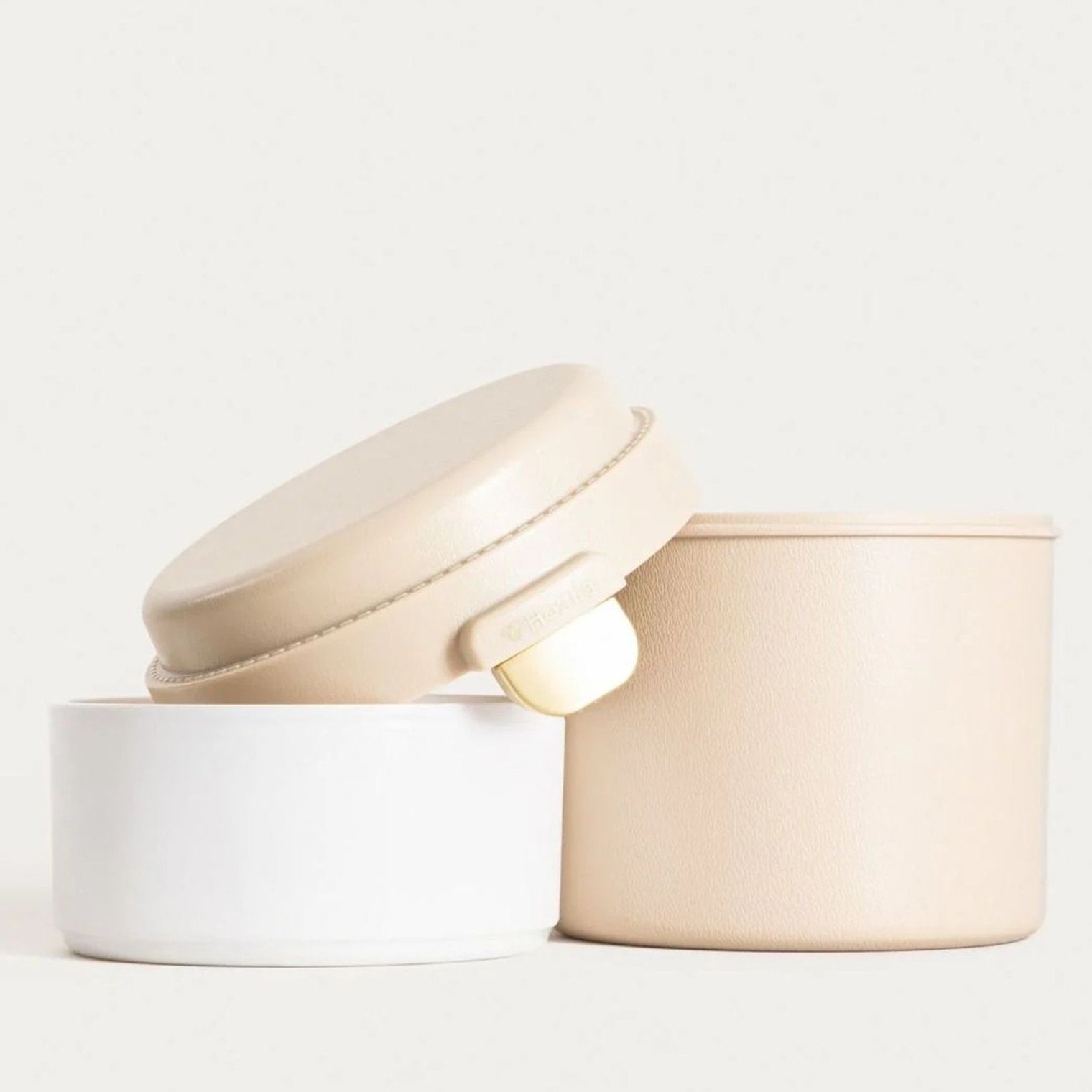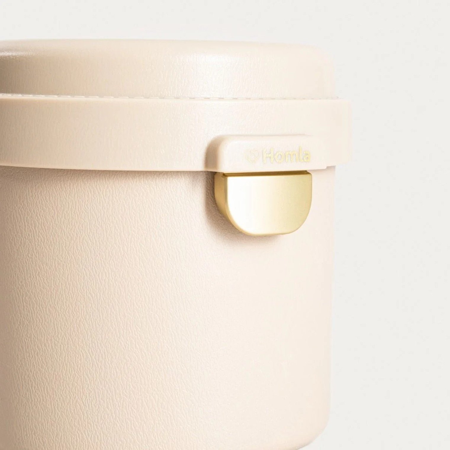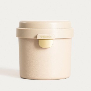 Круглый ланчбокс бежевого цвета, 13 × 11,5 см.
