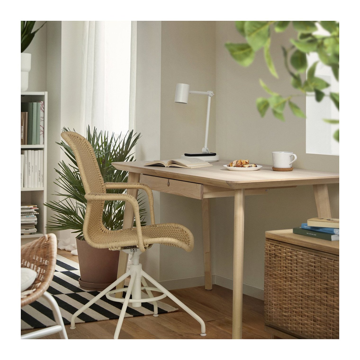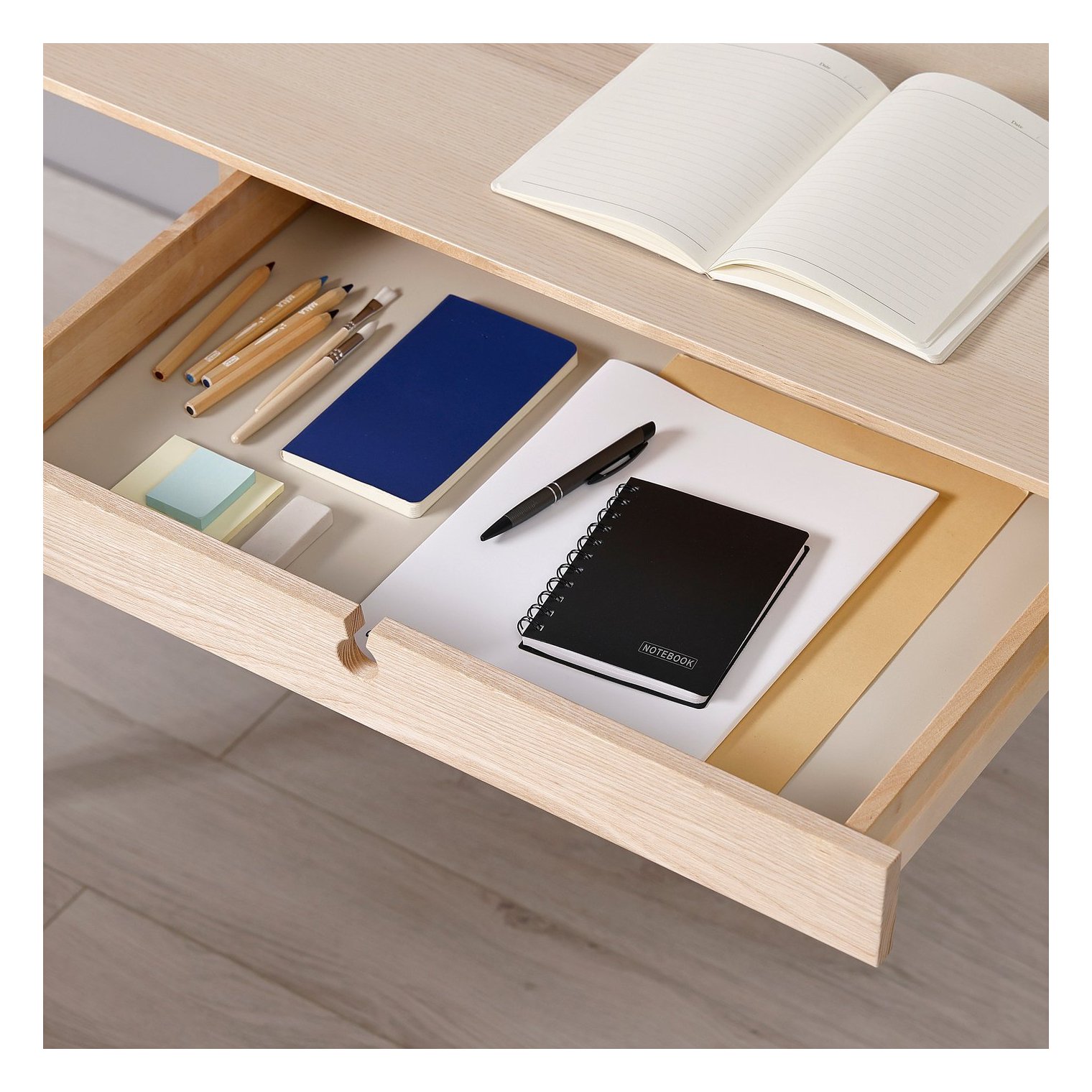 Большой стол создаёт пространство для творчества и продуктивности. На нём поместятся бумага, блокноты и ручки. Даже кофейная кружка и ваша любимая лампа!