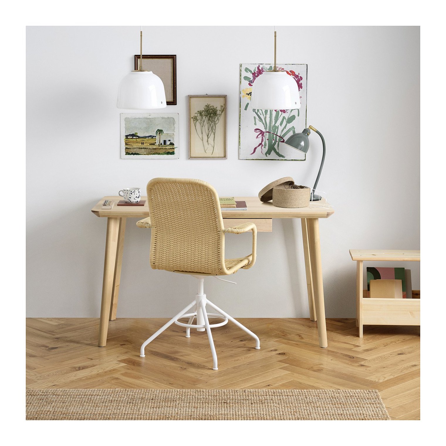 Столешница из ясеневого шпона и ножки из массива березы придадут интерьеру теплую и естественную атмосферу.