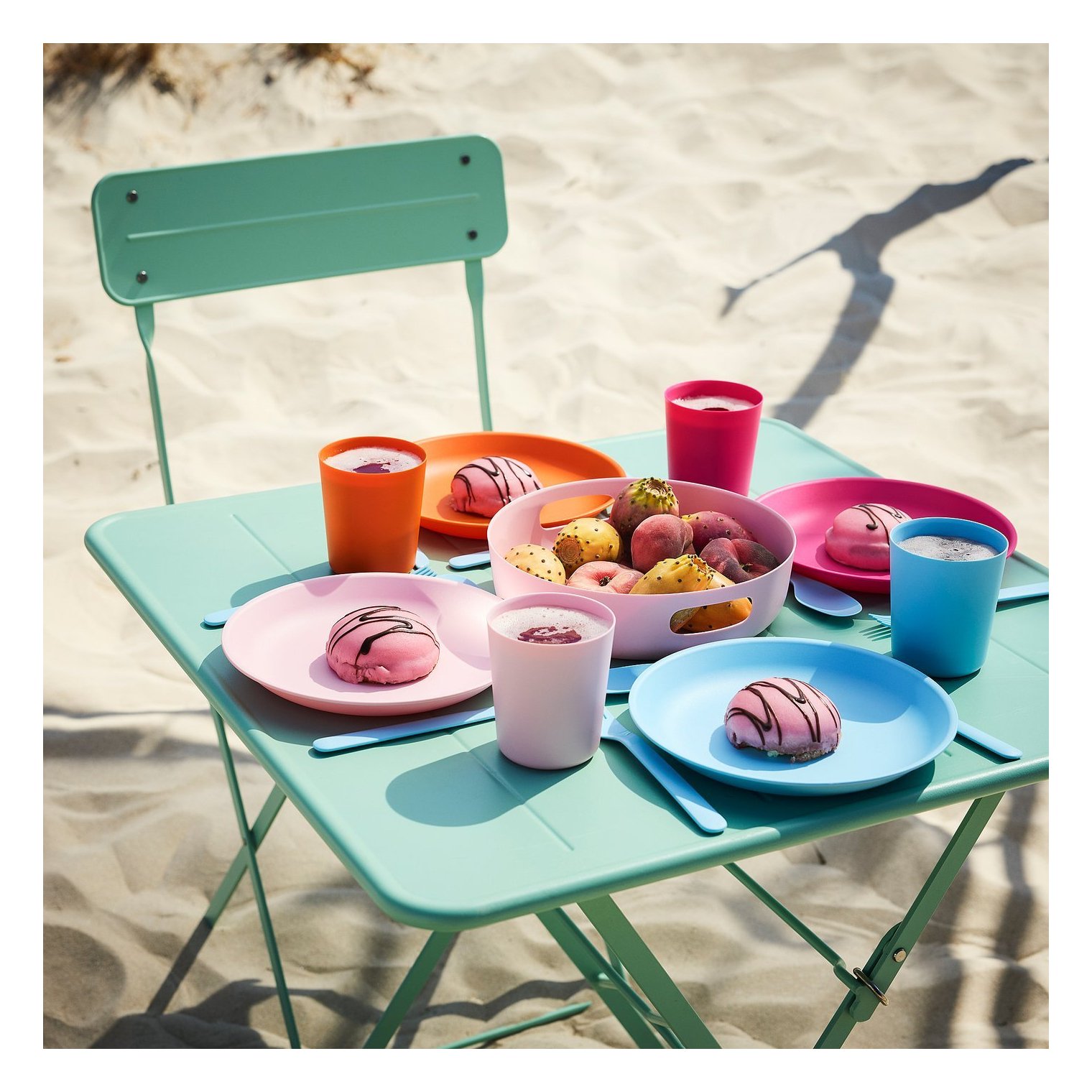 Стаканы можно складывать друг в друга, чтобы они занимали меньше места. Это позволяет поместить все компоненты набора в прилагаемую сумку, что облегчает хранение и транспортировку на пикник.