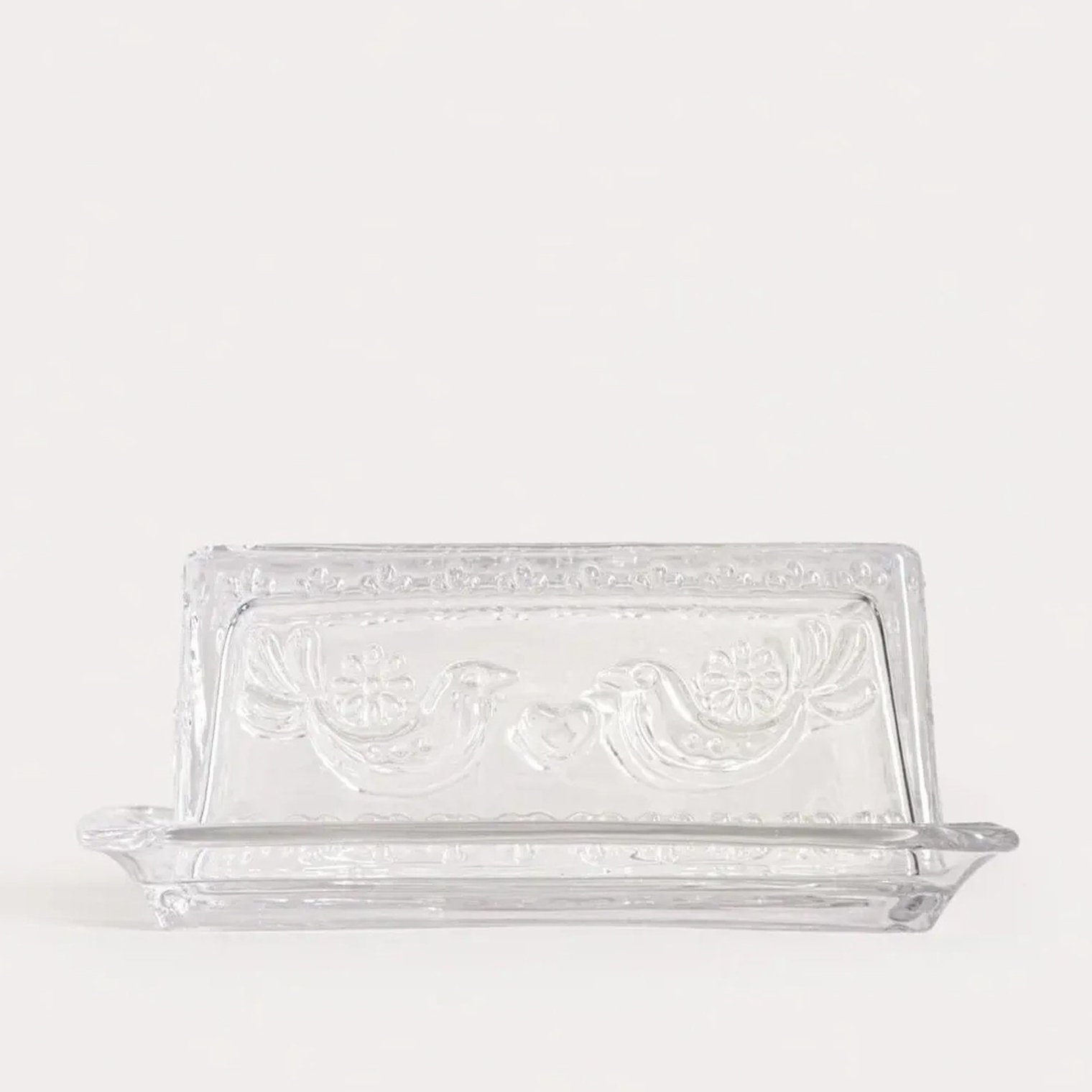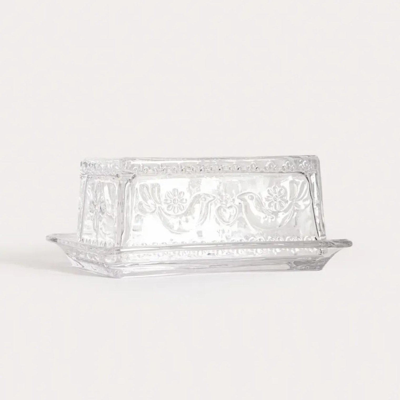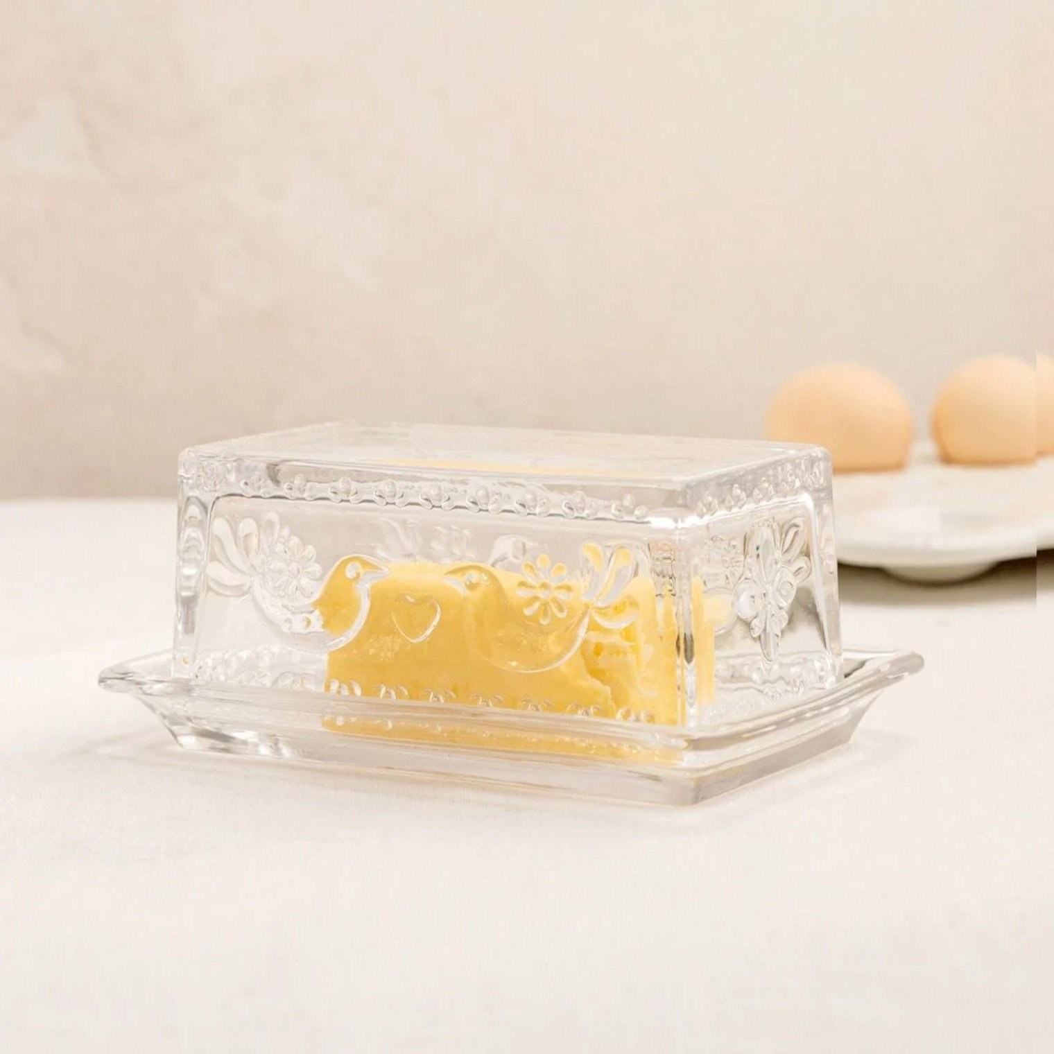 Масленка CRESTON привносит легкость и элегантность в сервировку стола. Прозрачное стекло с изображением птицы прекрасно отражает свет и подчеркивает содержимое. Эта деталь добавляет изысканности повседневным завтракам и создает гармоничный и эстетически привлекательный вид стола.
