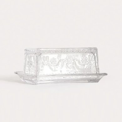 Масленка CRESTON прекрасно смотрится в классических, романтических и винтажных интерьерах. Она гармонично сочетается с белым фарфором, светлыми скатертями и деревянными столешницами, где декоративный акцент и легкий блеск стекла играют ключевую роль.