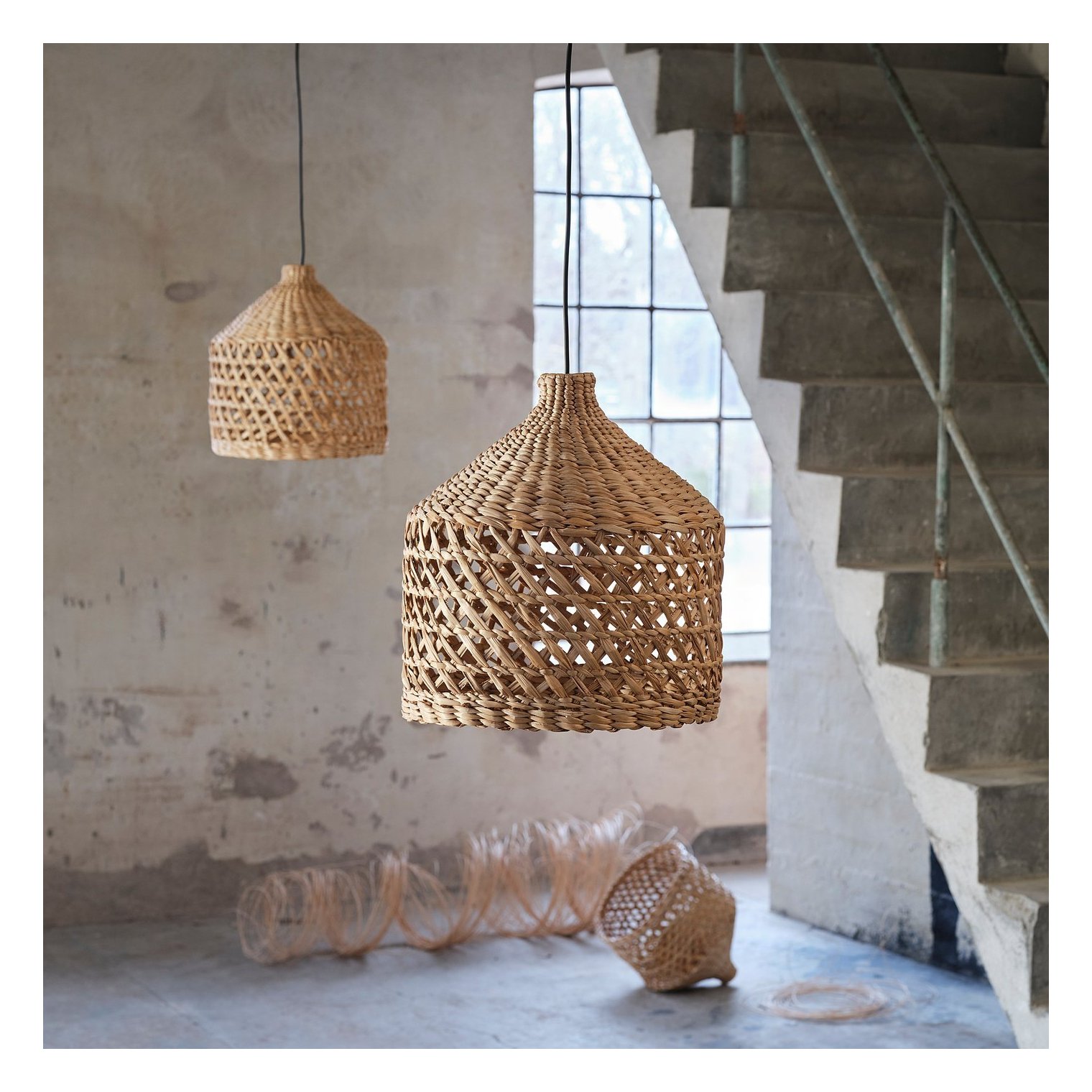 Каждый абажур уникален, поскольку изготовлен из банановых волокон с естественными цветовыми вариациями и сплетен вручную опытными мастерами.