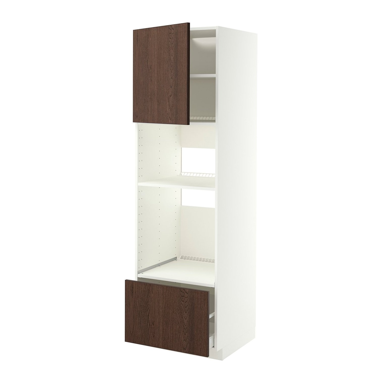 Высокий шкаф для встраиваемой бытовой техники, белый/коричневый Sinarp, 60x60x200 см.