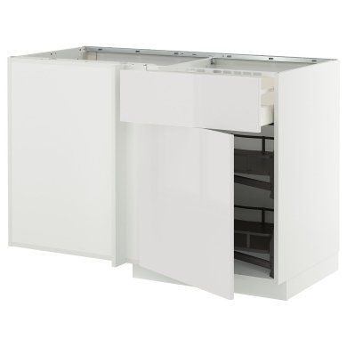 Максимально использует угловое пространство и облегчает обзор и доступ к содержимому шкафа благодаря выдвижной поворотной части с 2 полками.