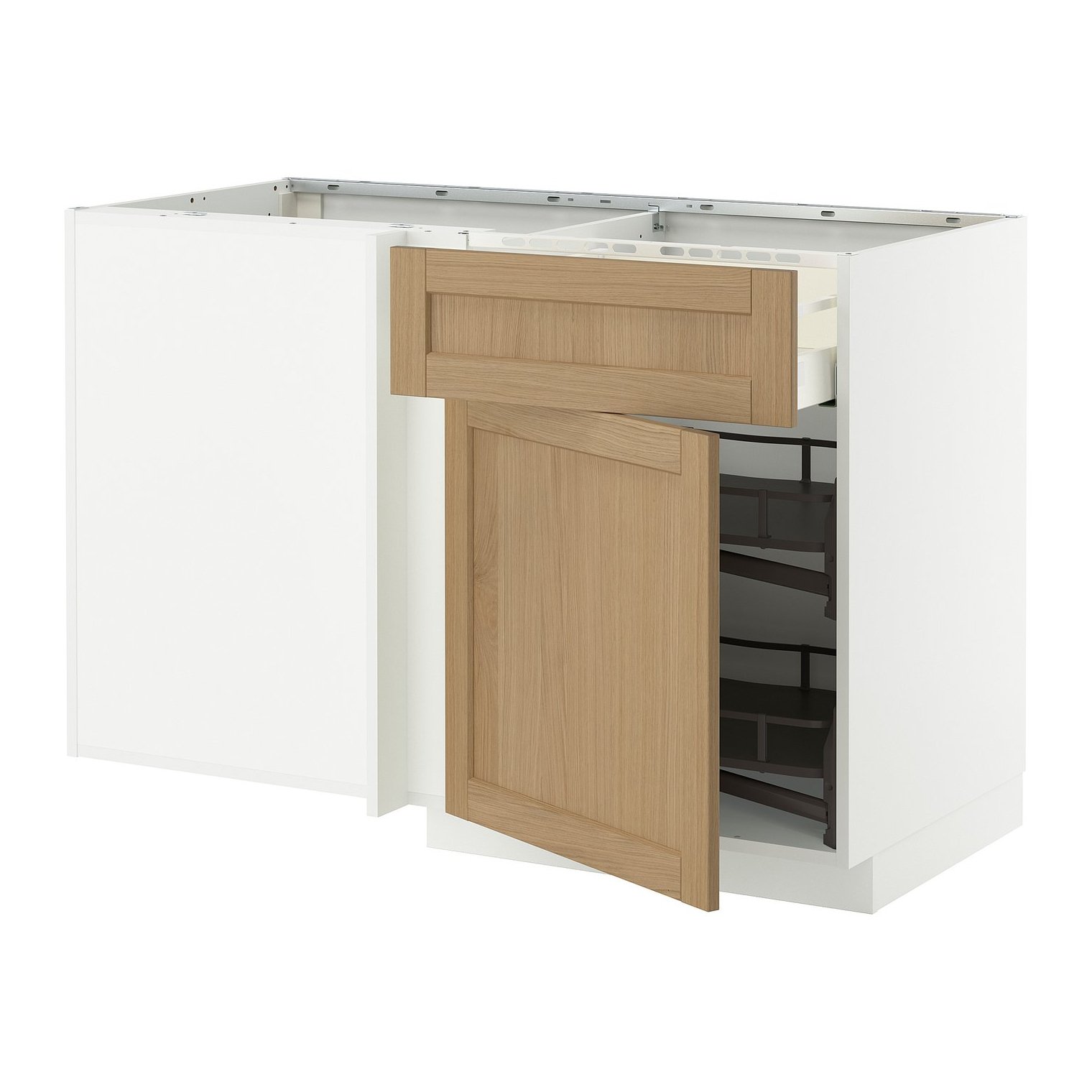 Максимально использует угловое пространство и облегчает обзор и доступ к содержимому шкафа благодаря выдвижной поворотной части с 2 полками.