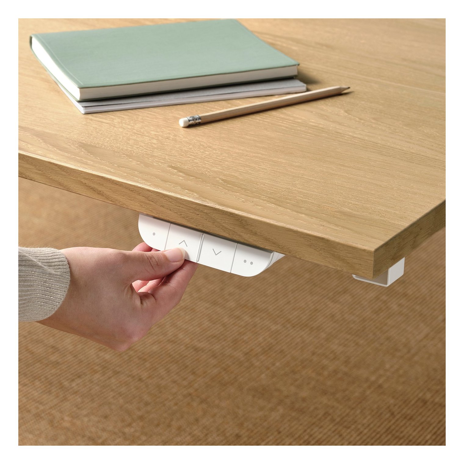 Панель ручного управления электрической рамы для сидения/стояния имеет 2 настройки памяти для легкой настройки.