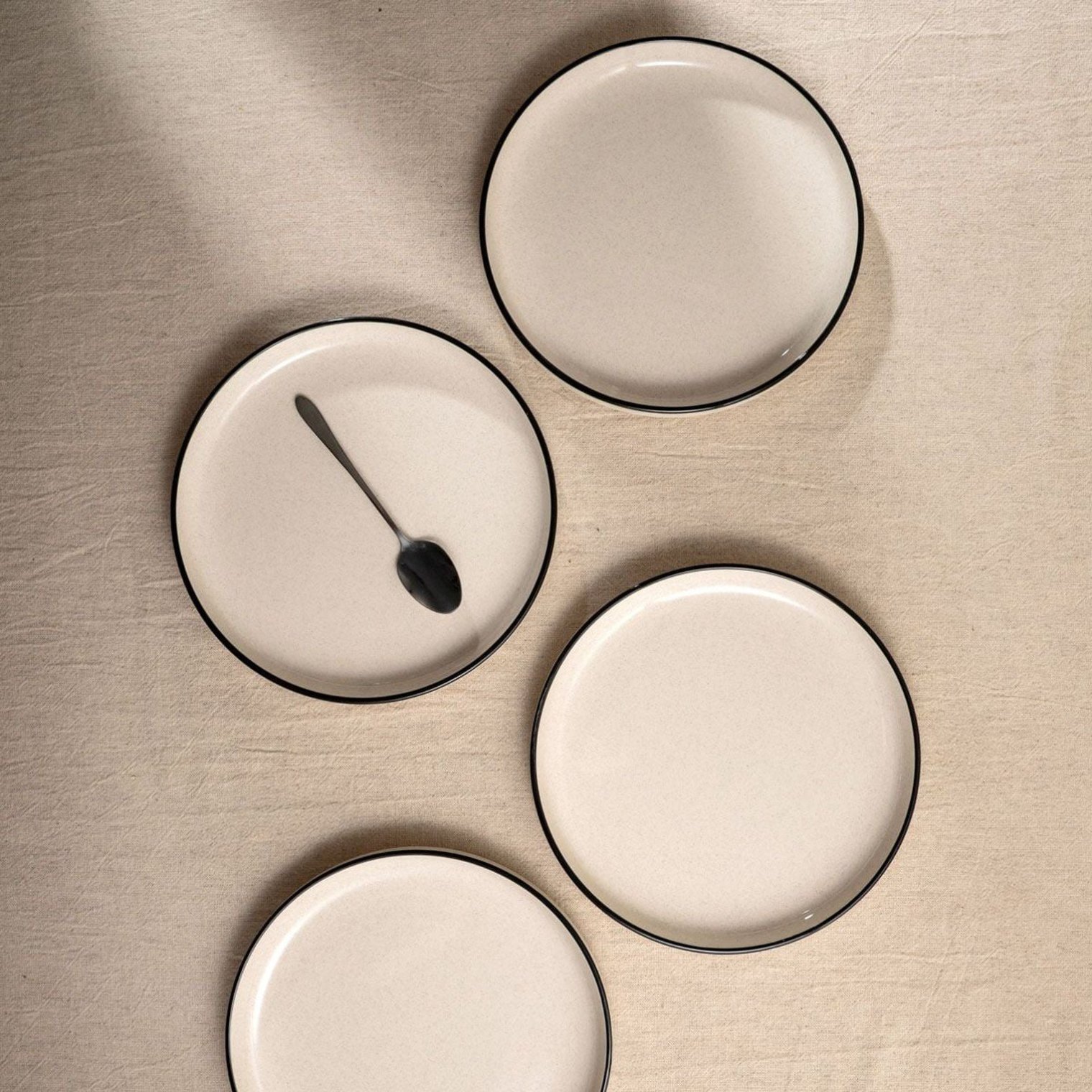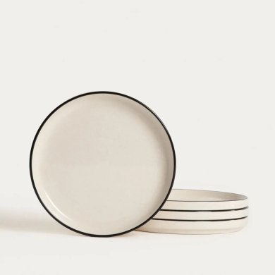 Набор из 4 десертных тарелок AZRA с черной окантовкой.