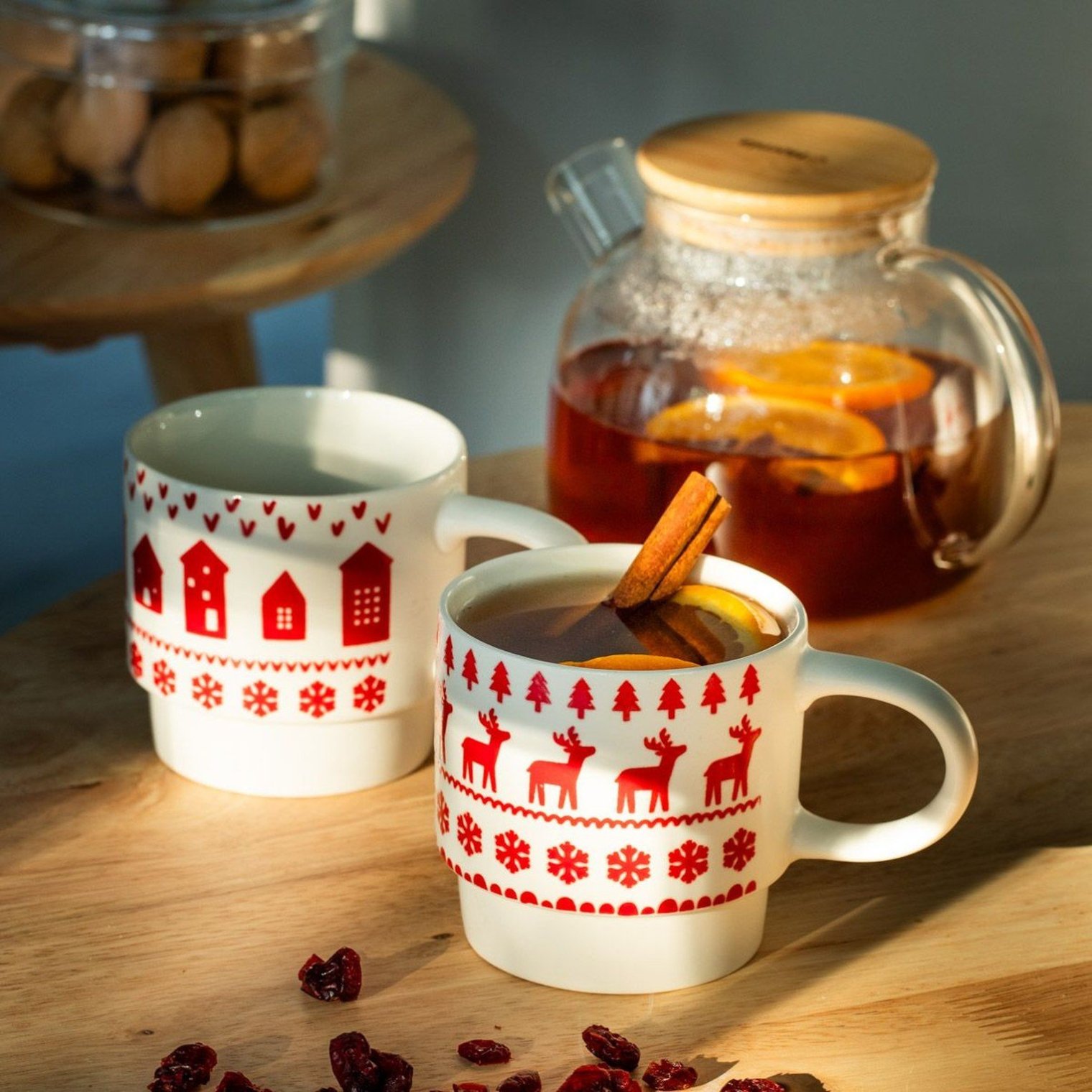 Этот набор кружек CANAMA восхищает своим очаровательным дизайном — олени, ёлки и снежинки создают тёплую зимнюю атмосферу. Благодаря своему минималистичному, но при этом весёлому дизайну эти кружки идеально впишутся в любой праздничный интерьер. Они станут прекрасным дополнением к зимнему утру с кофе или уютному вечеру с ароматным чаем.
