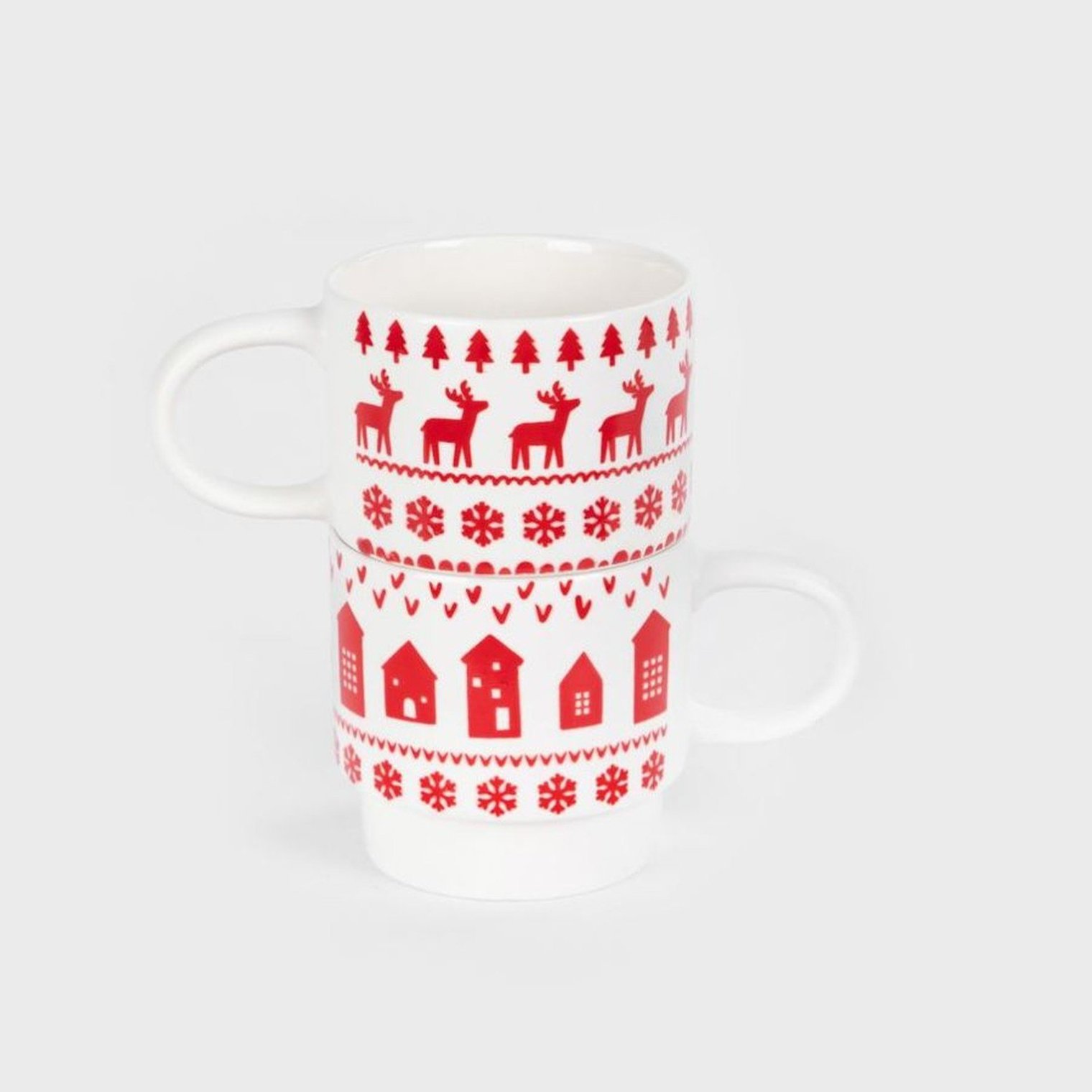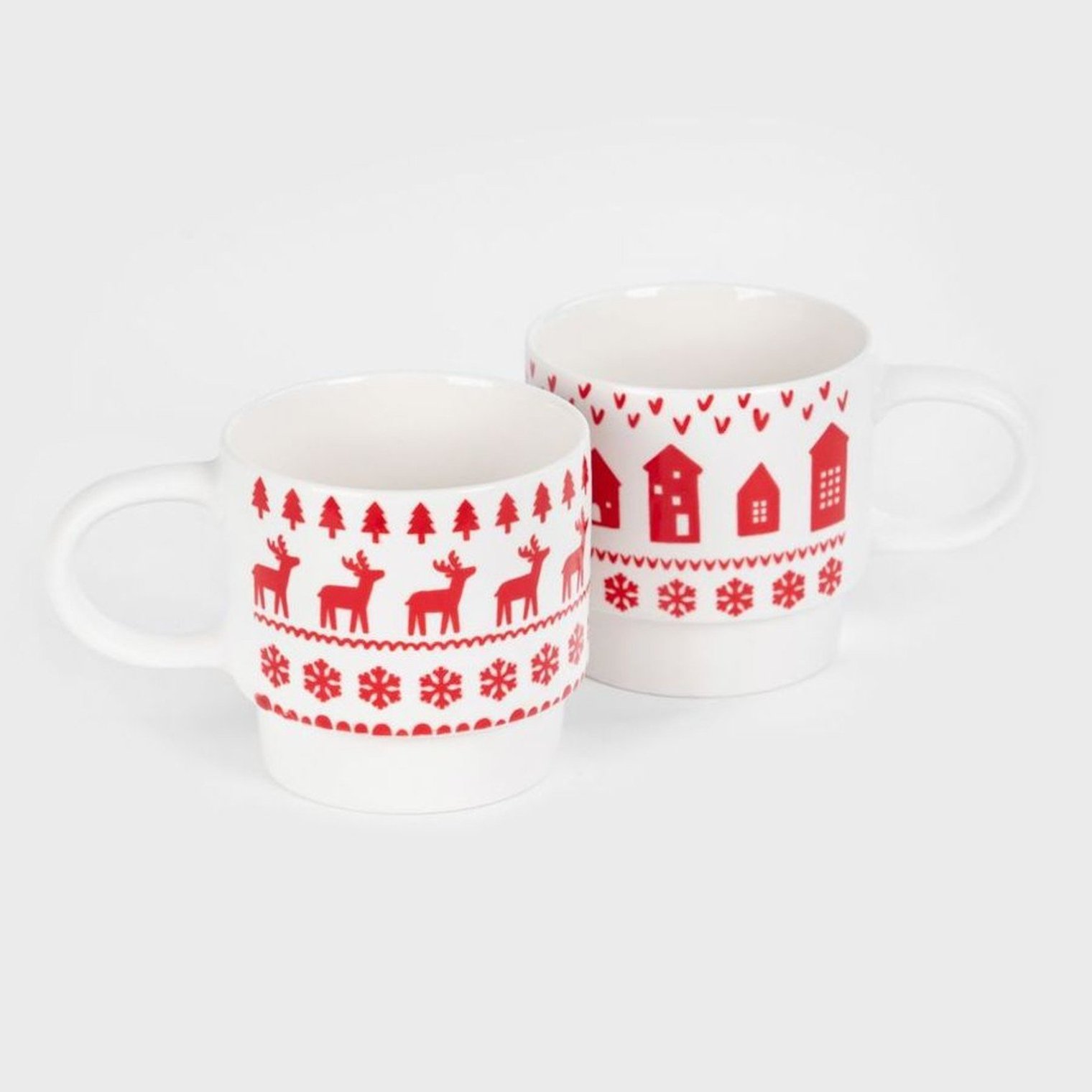 - Набор из 2 фарфоровых кружек с рождественским рисунком