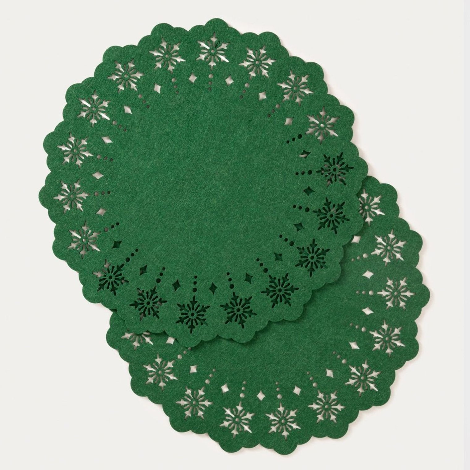 Набор из 2 фетровых ковриков зеленого цвета, 38 см.