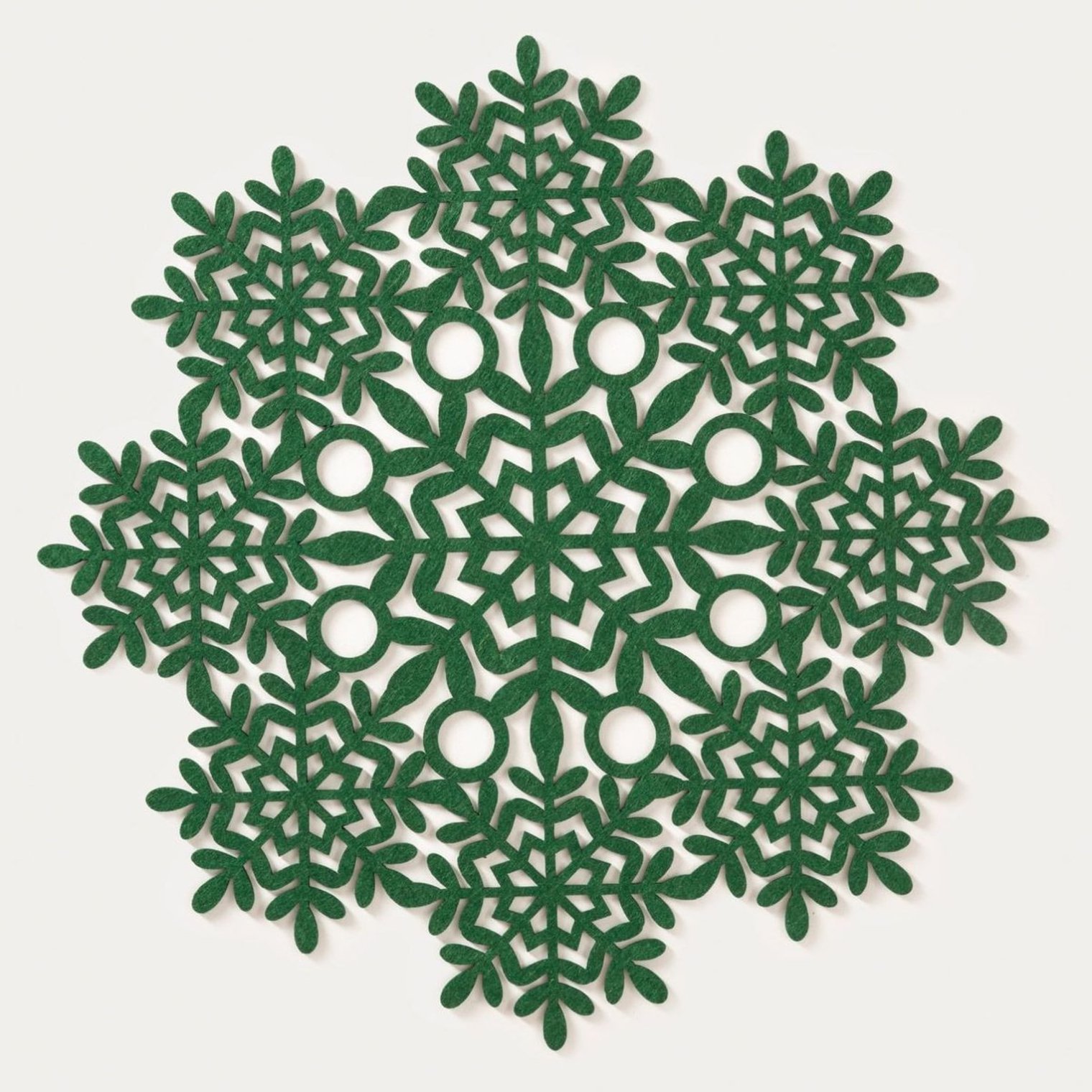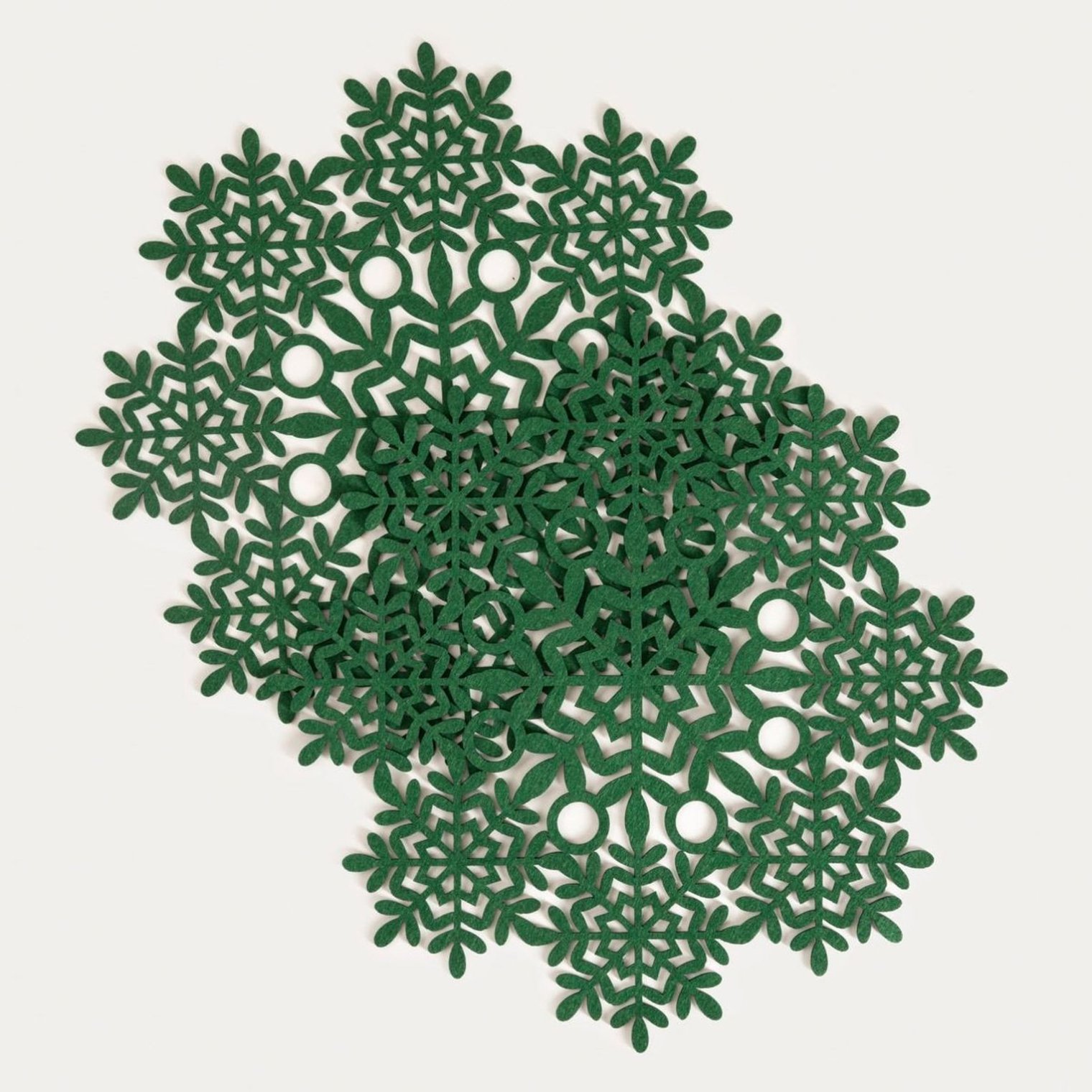 Коврики ORKEL — элегантное и практичное дополнение к сервировке стола. Ажурный узор в виде снежинок в сочетании с яркой зеленью придаёт им неповторимый характер и идеально дополняет праздничное настроение.