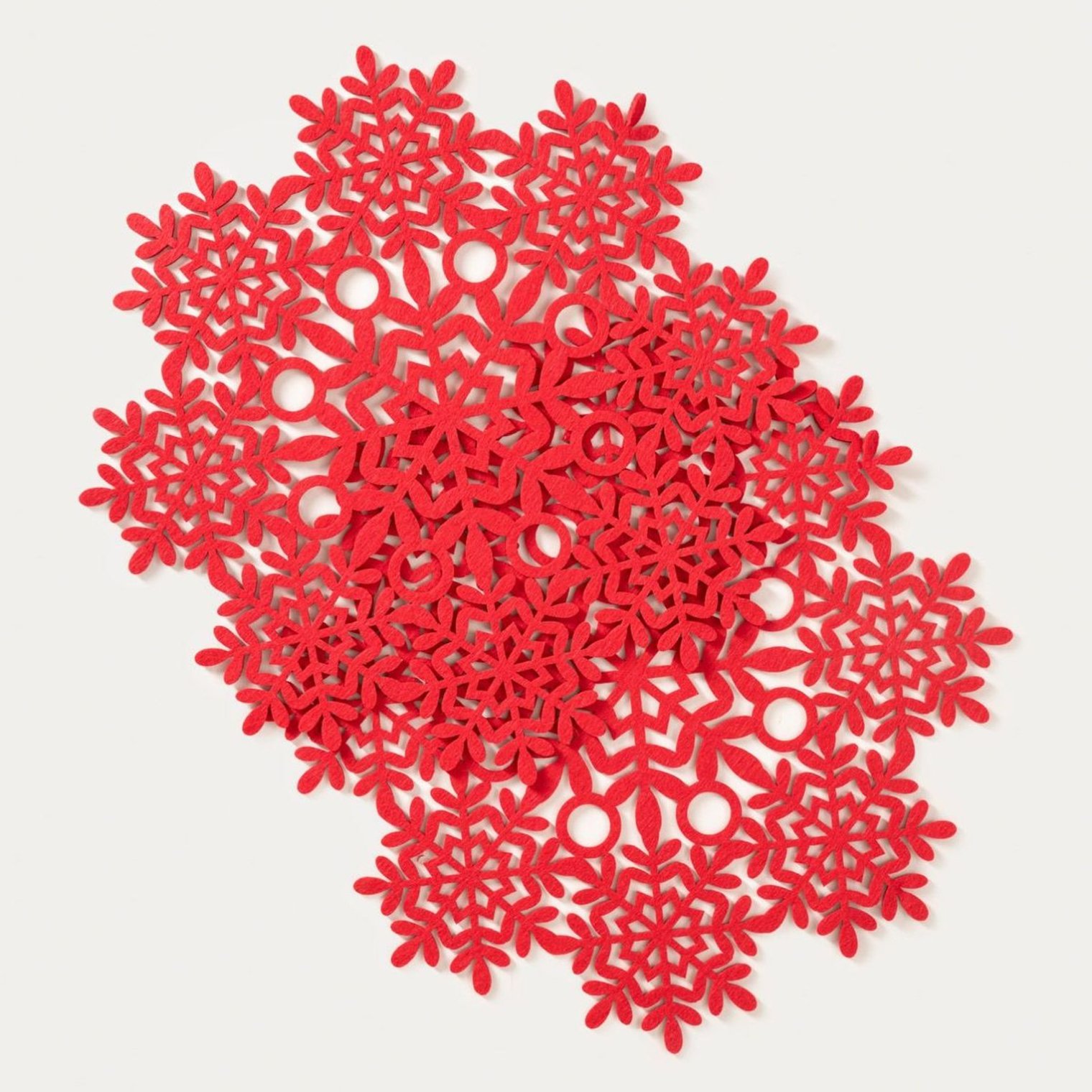 Коврики ORKEL — стильное дополнение, которое создаст неповторимую праздничную атмосферу в вашем доме. Их ажурный узор в виде снежинок красиво смотрится на столе, добавляя лёгкости и элегантности. Яркий красный цвет усиливает рождественскую атмосферу и идеально дополняет другие праздничные украшения.