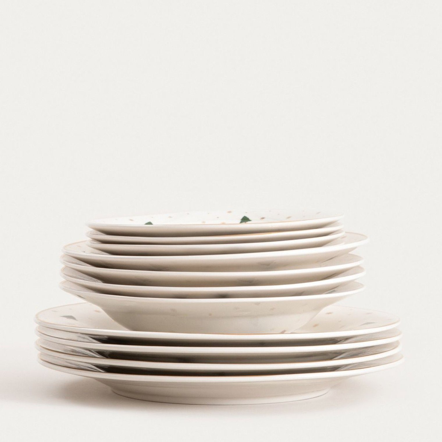 Набор ZAPHIRA Star включает 12 тарелок: 4 обеденные, 4 десертные и 4 суповые. Этот уникальный набор идеально подходит для подачи горячих блюд и сладостей на Рождество. Он прекрасно дополнит ваш праздничный стол, дополняя другие сервировочные приборы и элементы декора.