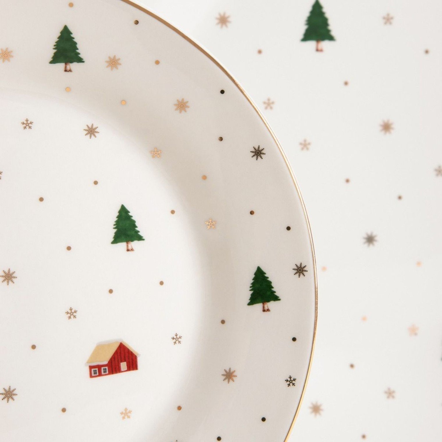 Этот набор фарфоровых тарелок украшен очаровательным праздничным узором. Это делает его прекрасным сервизом, идеально подходящим для Рождества. Ароматные блюда и сладкие пирожные будут выглядеть ещё аппетитнее, а ваши встречи с близкими станут ещё волшебнее и радостнее.