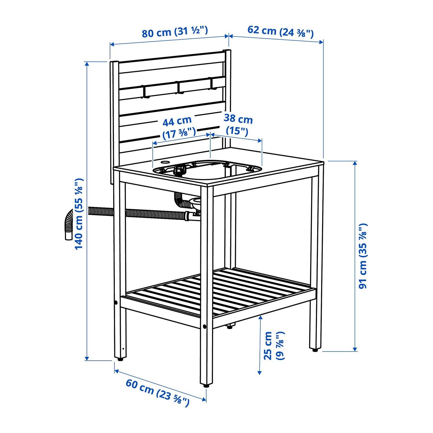 Практичная задняя панель добавляет очарования и функциональности садовой кухне NÄMMARÖ. На ней можно повесить крючки для кухонной утвари или использовать ее в качестве декоративного элемента.