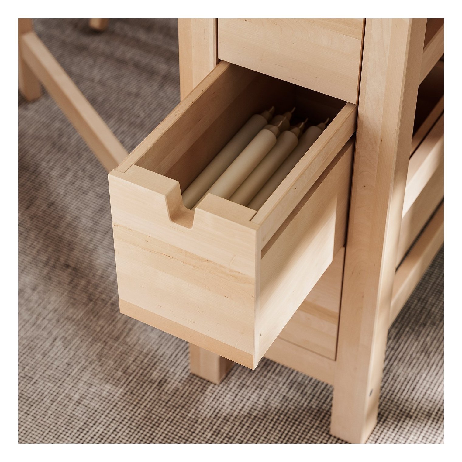 В шести выдвижных ящиках под столешницей можно хранить такие предметы, как столовые приборы, салфетки или свечи.