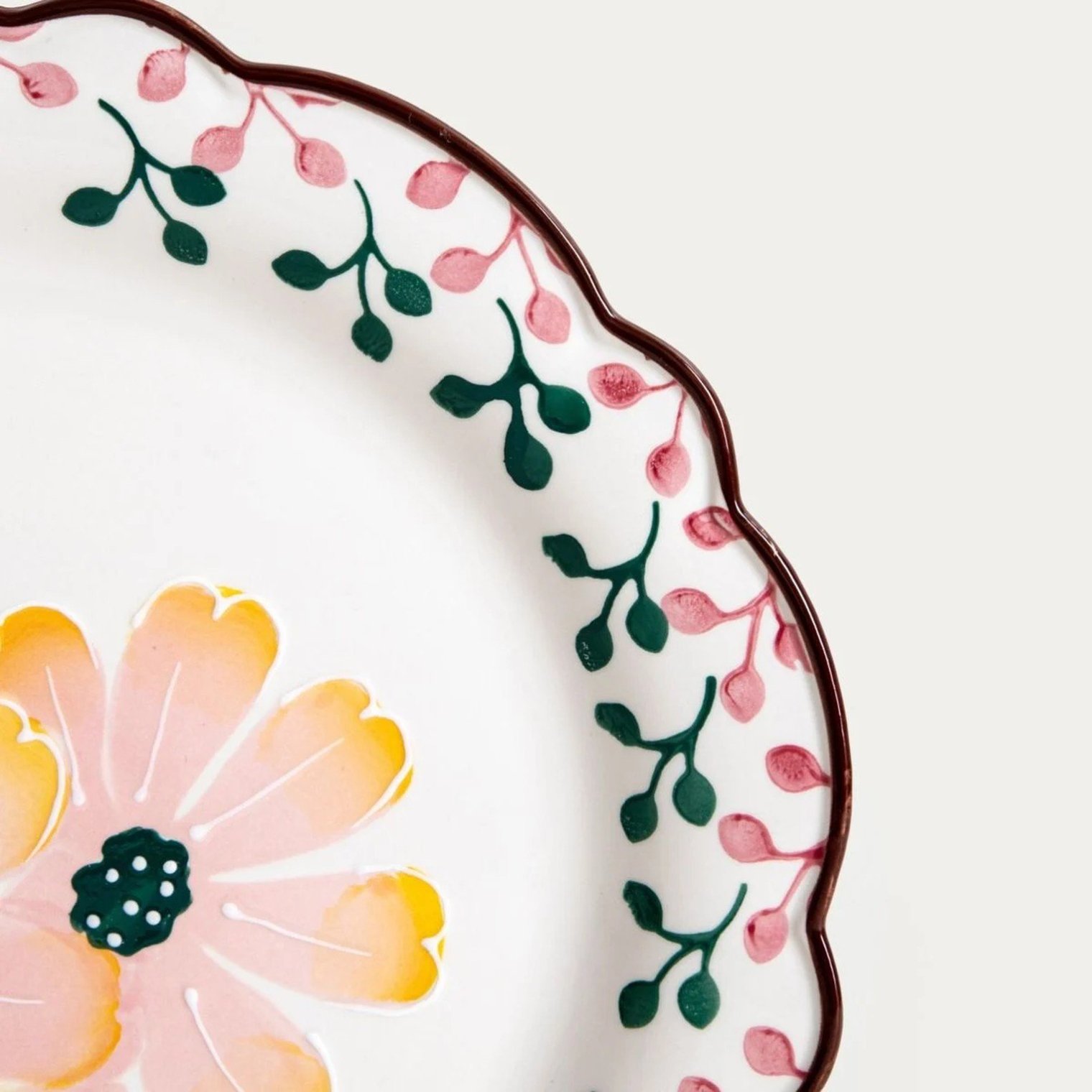 Обеденная тарелка NOYA создает теплую и радостную атмосферу за столом благодаря своему декоративному узору, вдохновленному растительными мотивами. Цветок, расположенный в центре, привлекает внимание и делает любое блюдо более аппетитным. Светлый фон в сочетании с яркими цветами придает всей тарелке легкость и уют, располагая к совместным праздничным застольям.