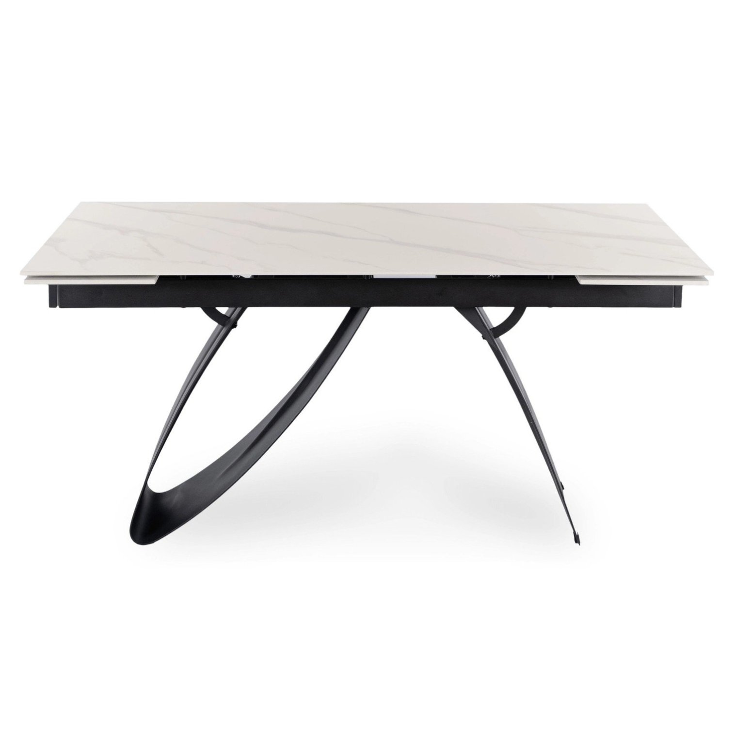 Геометрические черные металлические ножки гарантируют устойчивость и придают столу неповторимый характер. Сочетание черного основания и белой керамической столешницы создает элегантный контраст, идеально дополняющий современные интерьеры и интерьеры в стиле лофт.
