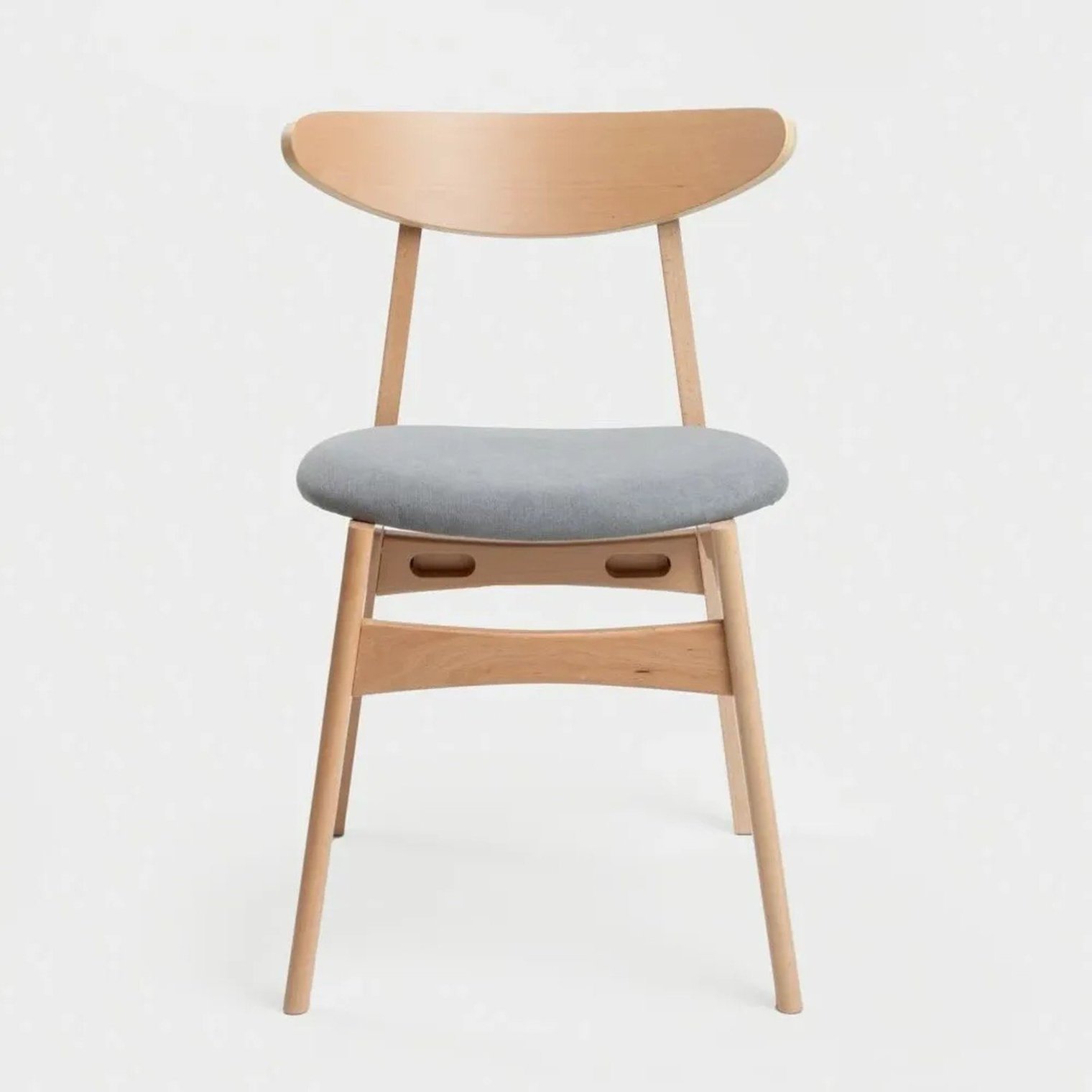 Стул изготовлен из высококачественной буковой древесины, что обеспечивает его прочность и устойчивость. Обивка серого цвета не только эстетична, но и удобна, а также легко чистится, что делает его идеальным выбором для повседневного использования.