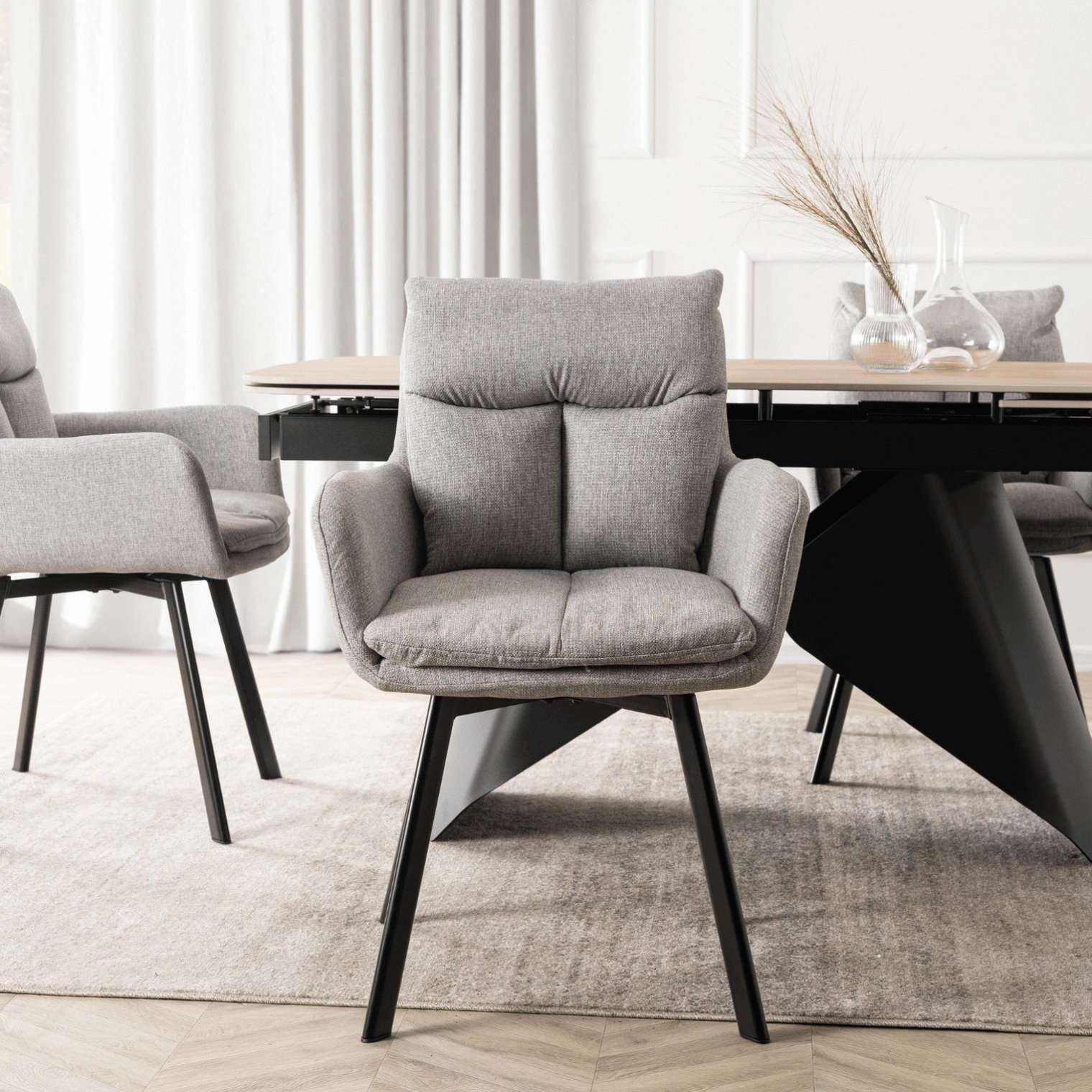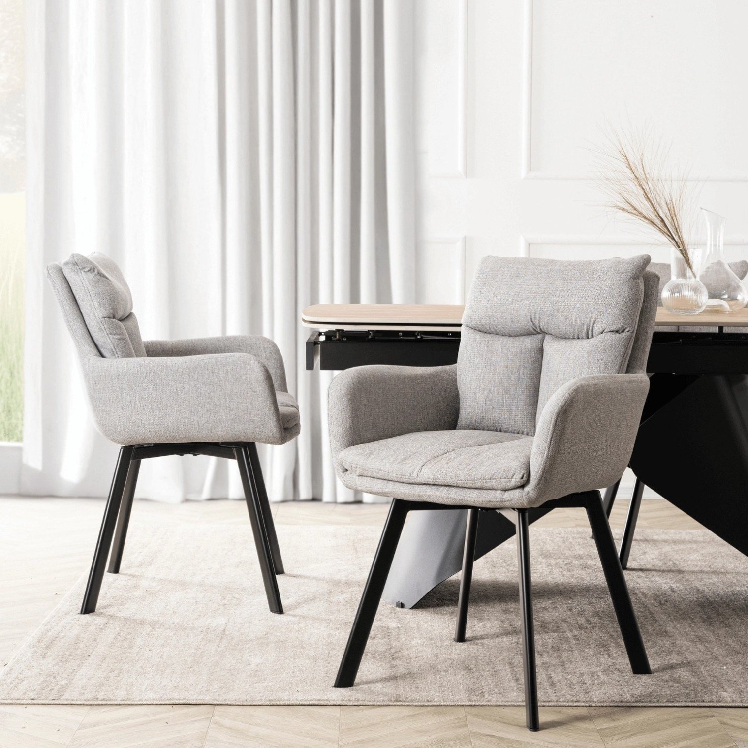 - Поворот сиденья на 90° в обоих направлениях — позволяет удобно поворачиваться к столу, кухне или гостиной, не передвигая стул.