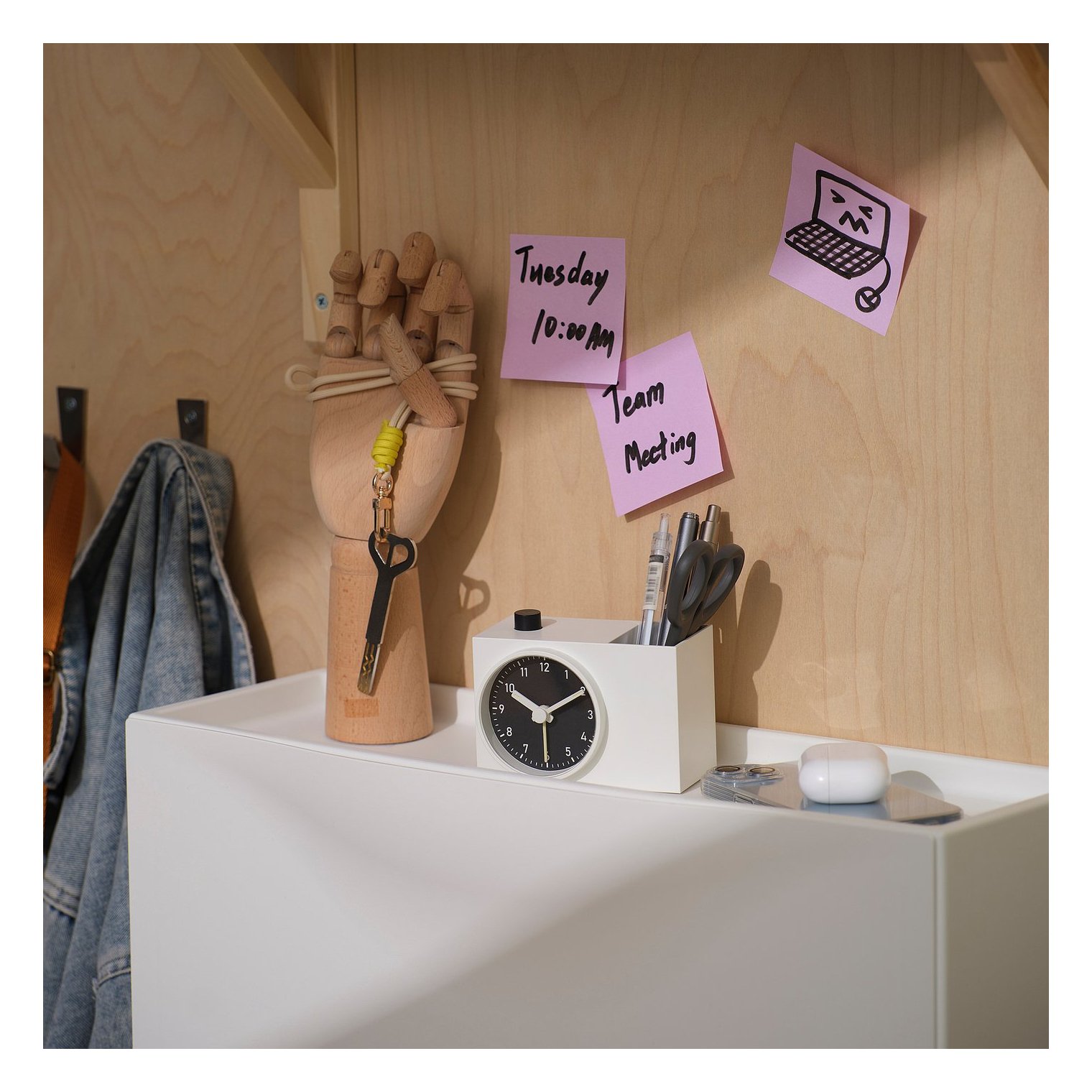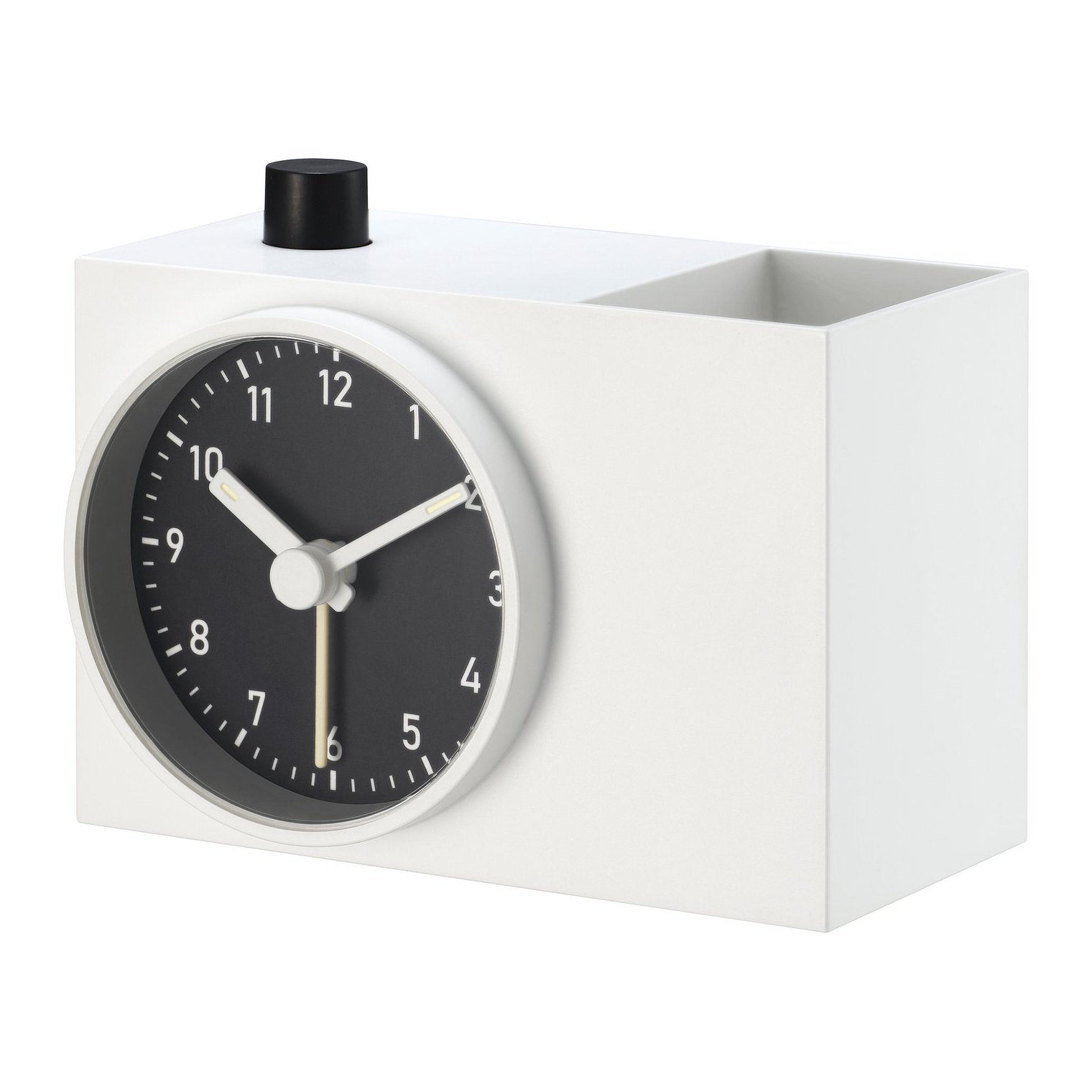 Благодаря практичному отделению для ручек и других мелких предметов, это больше, чем просто обычный будильник. Он поможет вам поддерживать порядок на рабочем столе или в коридоре.