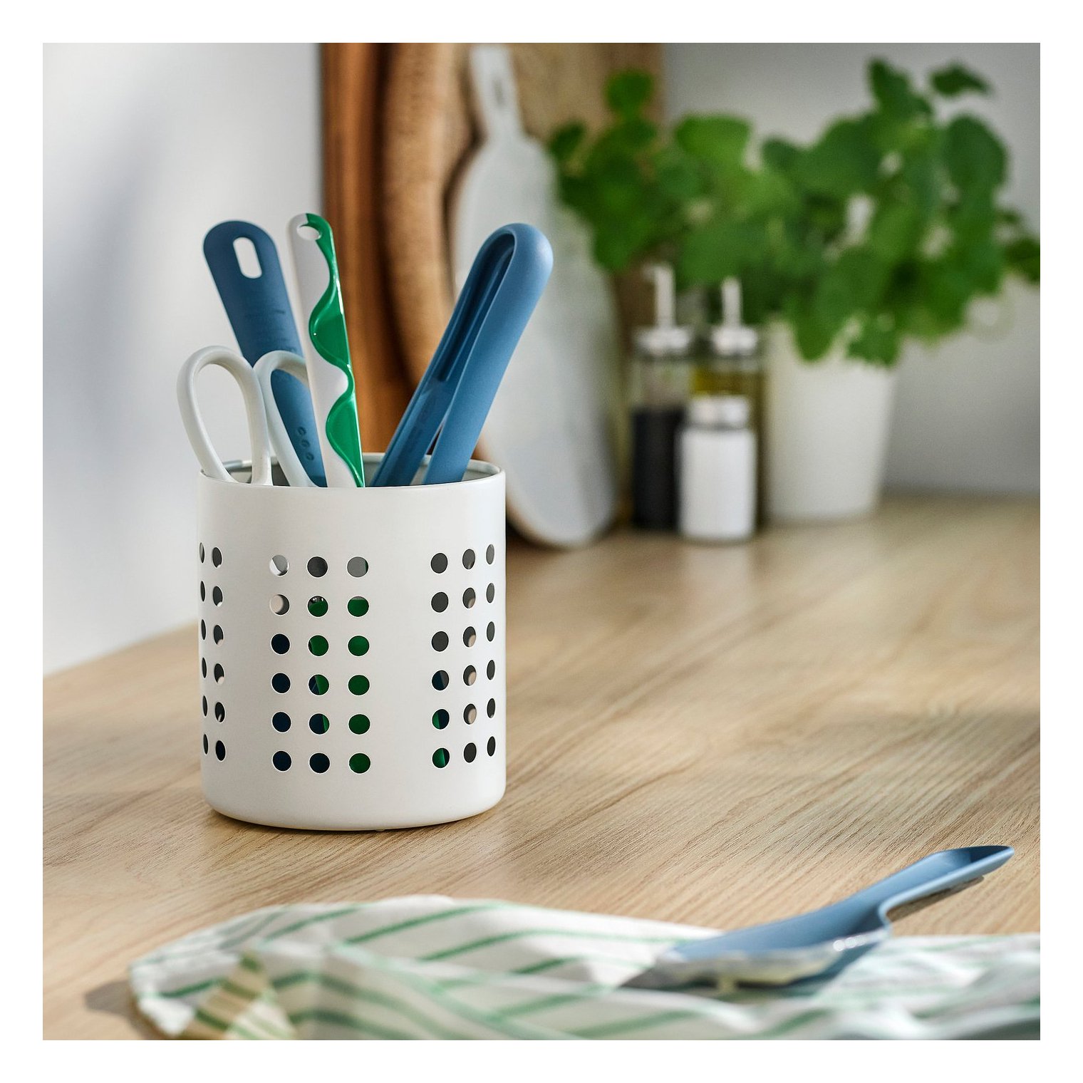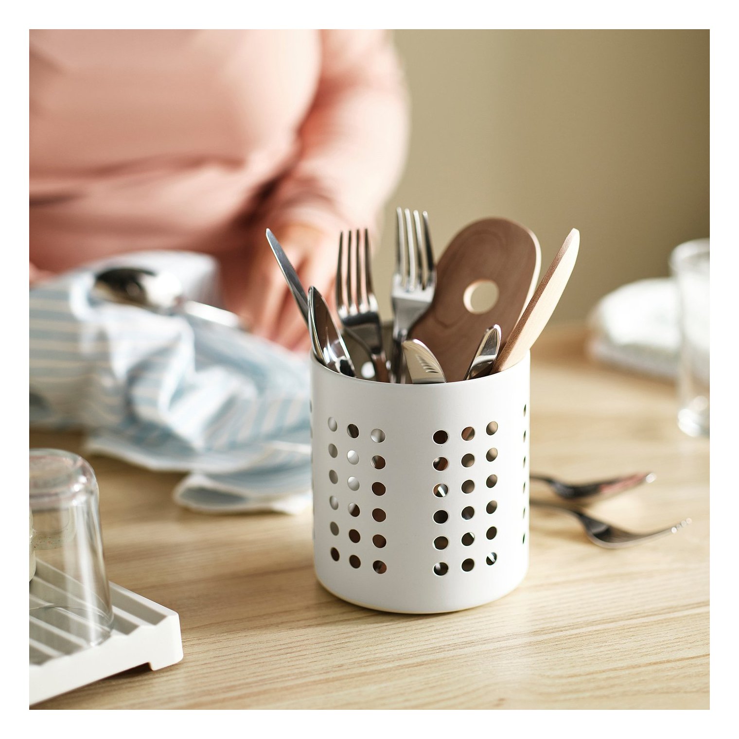 Практичный контейнер, в котором можно сушить кухонную утварь, а также переносить столовые приборы к столу.