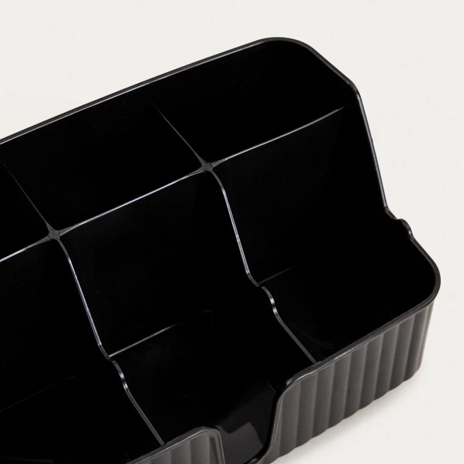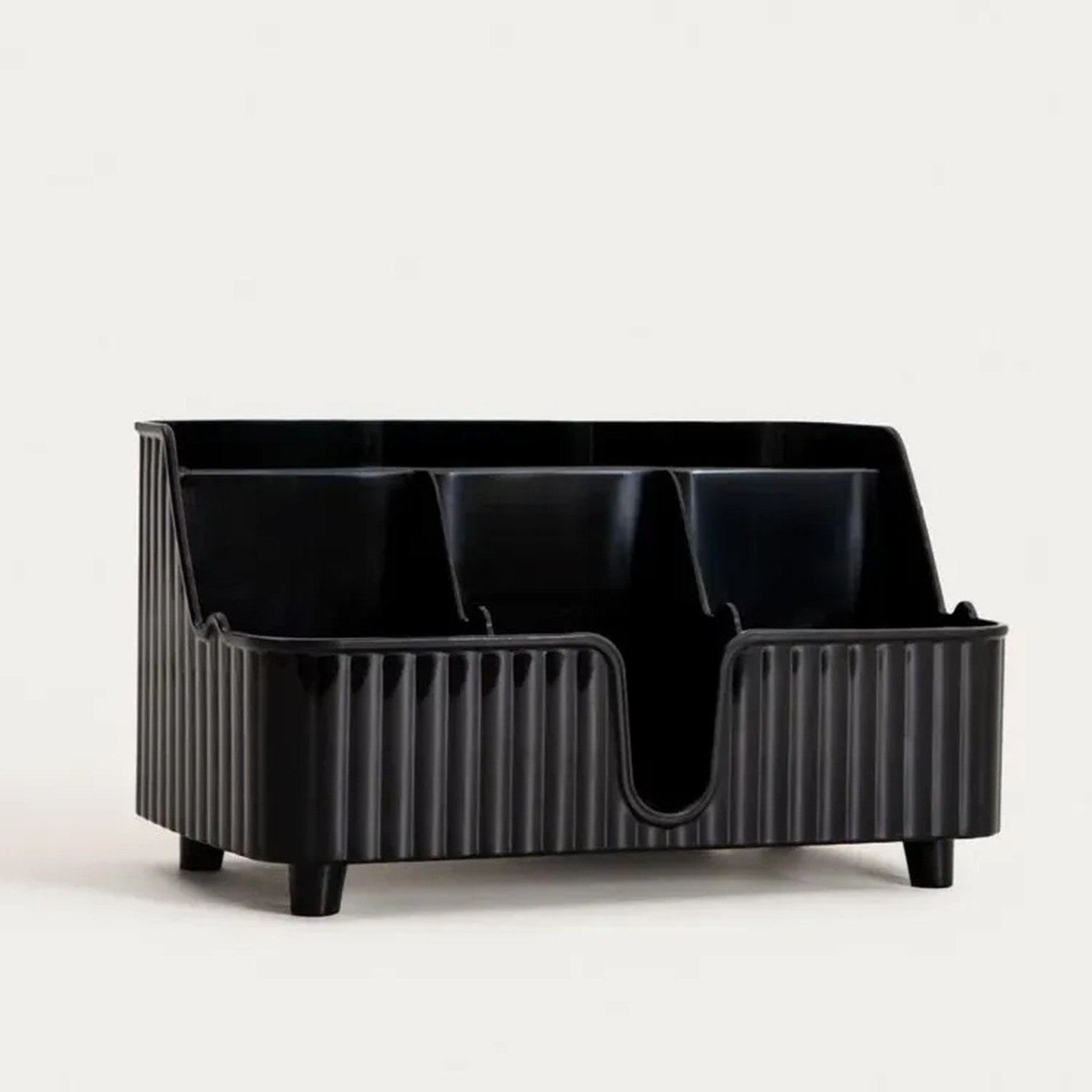 Органайзер DIALL — это функциональное и эстетичное решение, которое поможет вам упорядочить повседневные аксессуары в ванной или на кухне. Классический цвет в сочетании с едва заметными бороздками придает ему современный минималистичный вид, который органично вписывается в различные интерьеры.