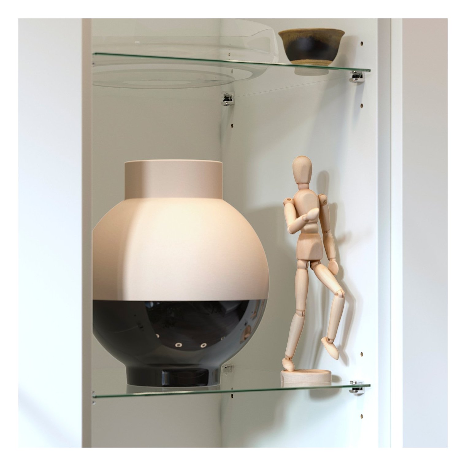 Средняя секция оснащена четырьмя регулируемыми полками (две стеклянные и две деревянные), что позволяет легко адаптировать пространство под ваши нужды.