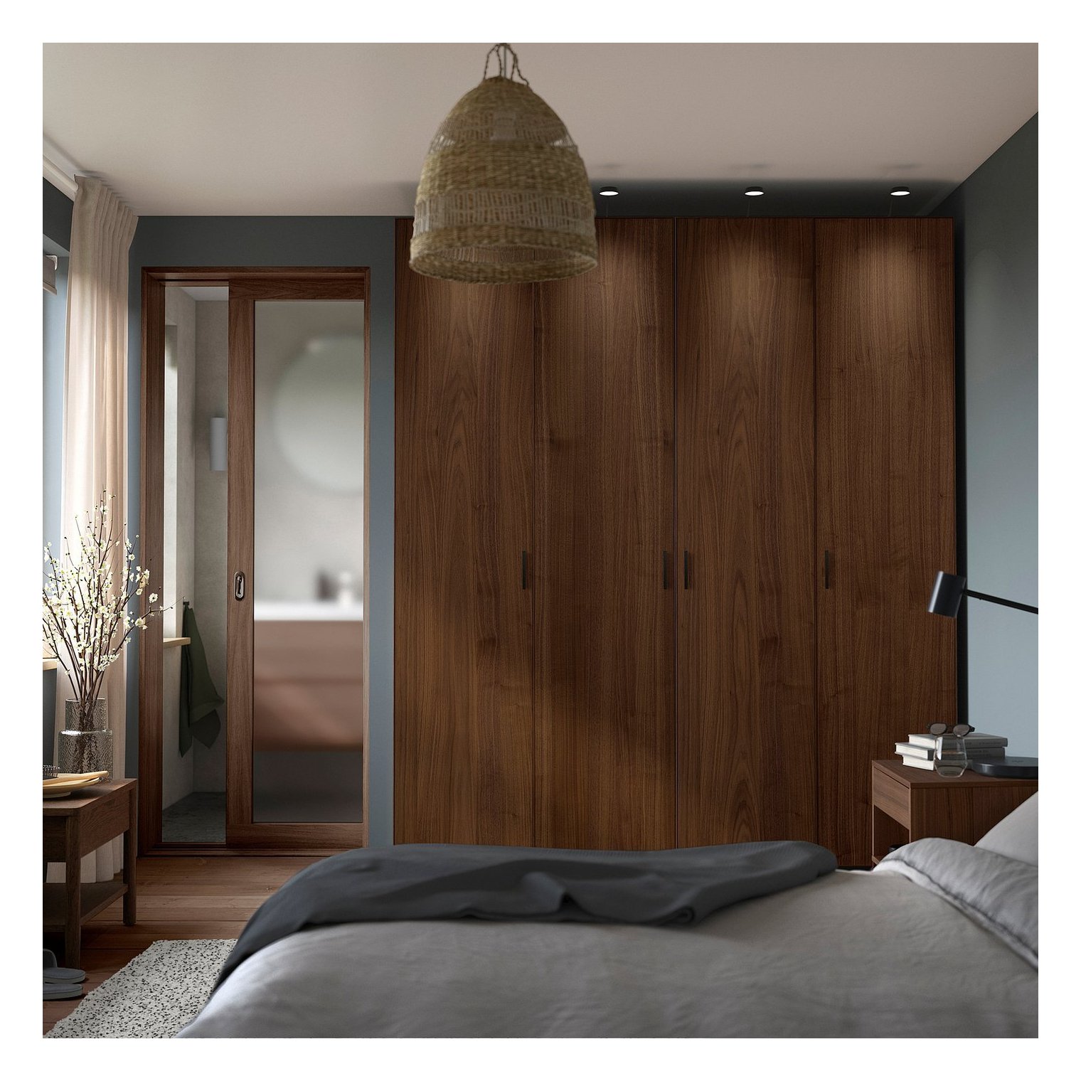 Уникальная текстура орехового шпона придает каждой двери неповторимый вид и создает в интерьере теплую, естественную атмосферу.