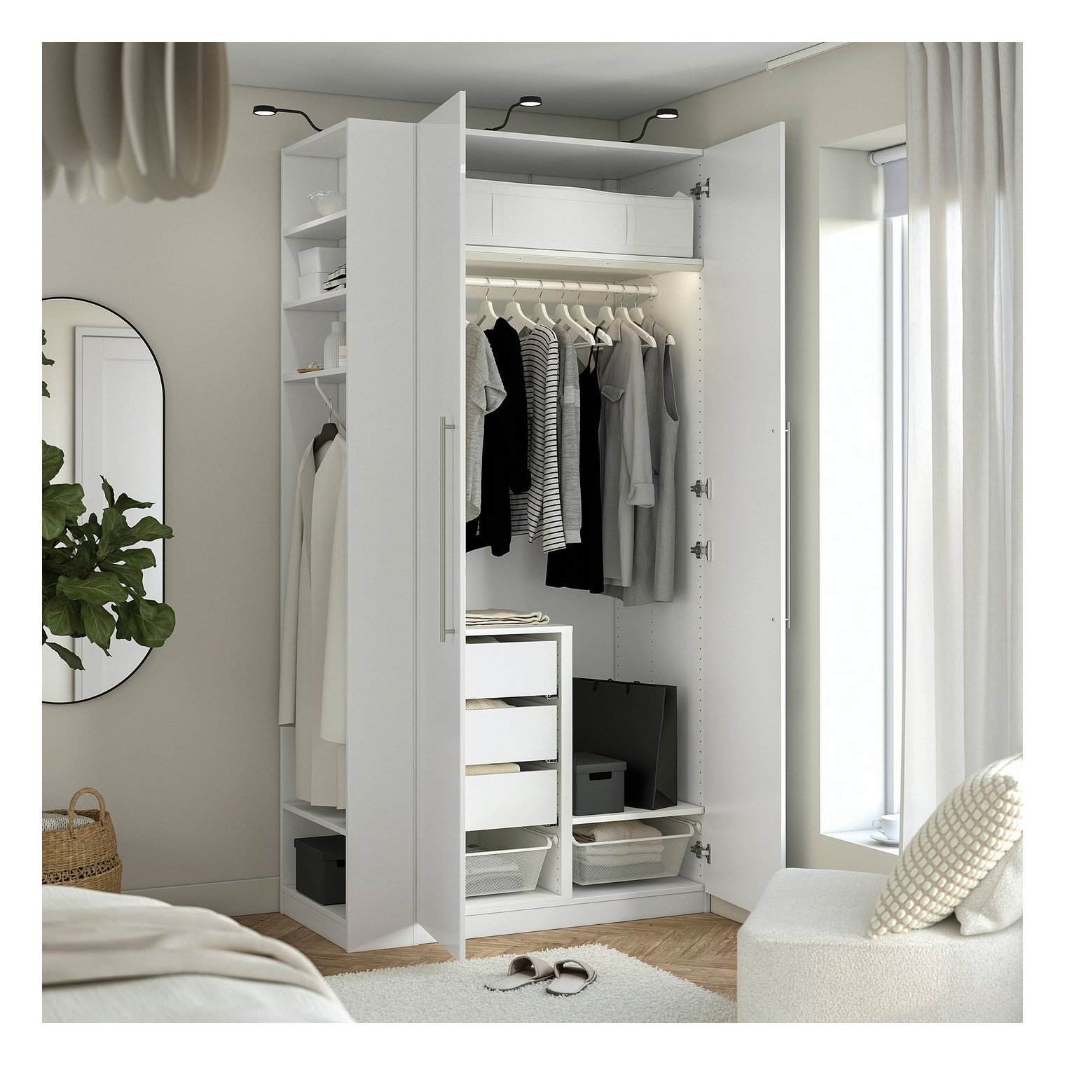 Вместо того, чтобы рыться в гардеробе с утра, лучше подготовиться накануне? В гардеробе PAX можно хранить одежду, которую вы планируете надеть в ближайшее время, или ту, которую хотите проветрить перед тем, как убрать.