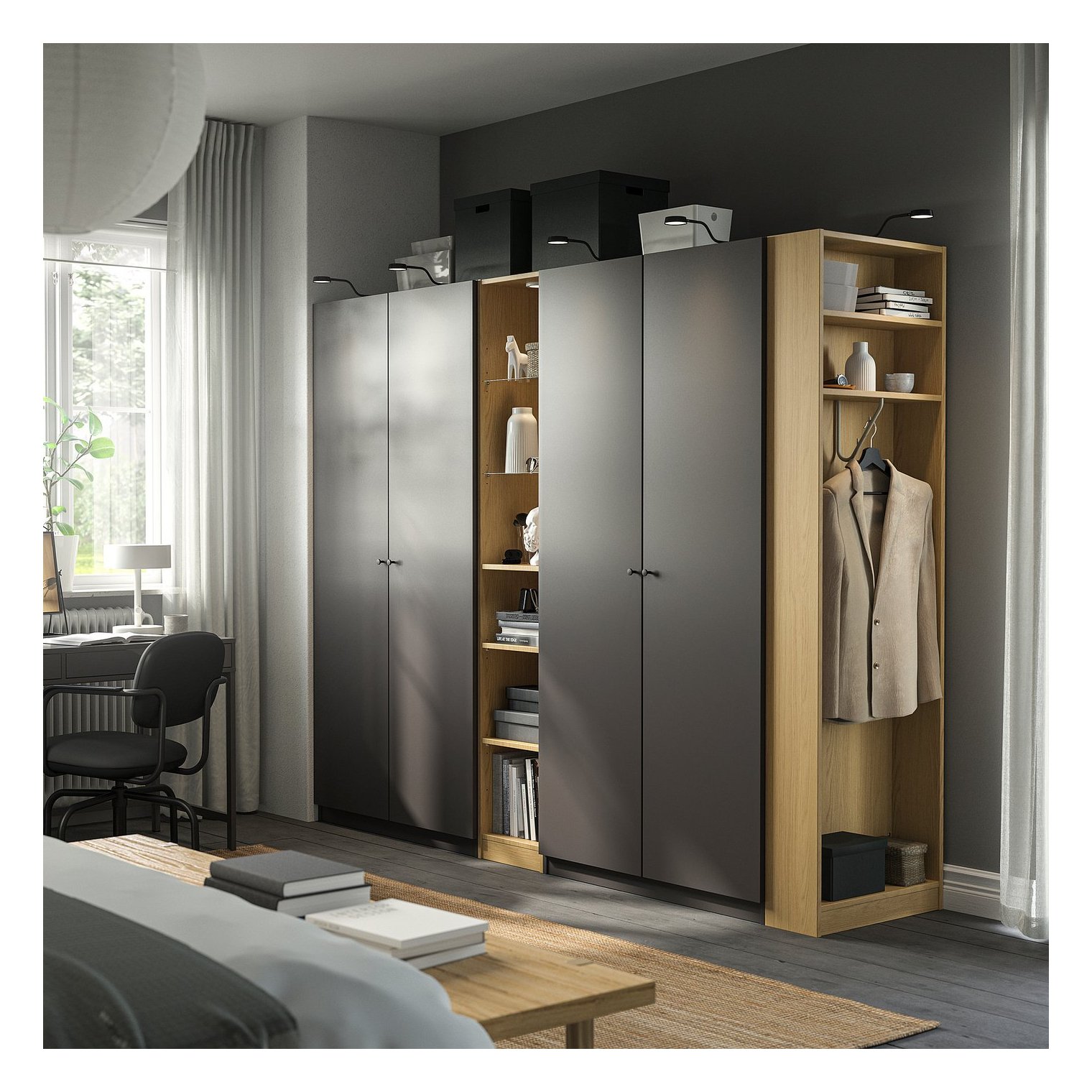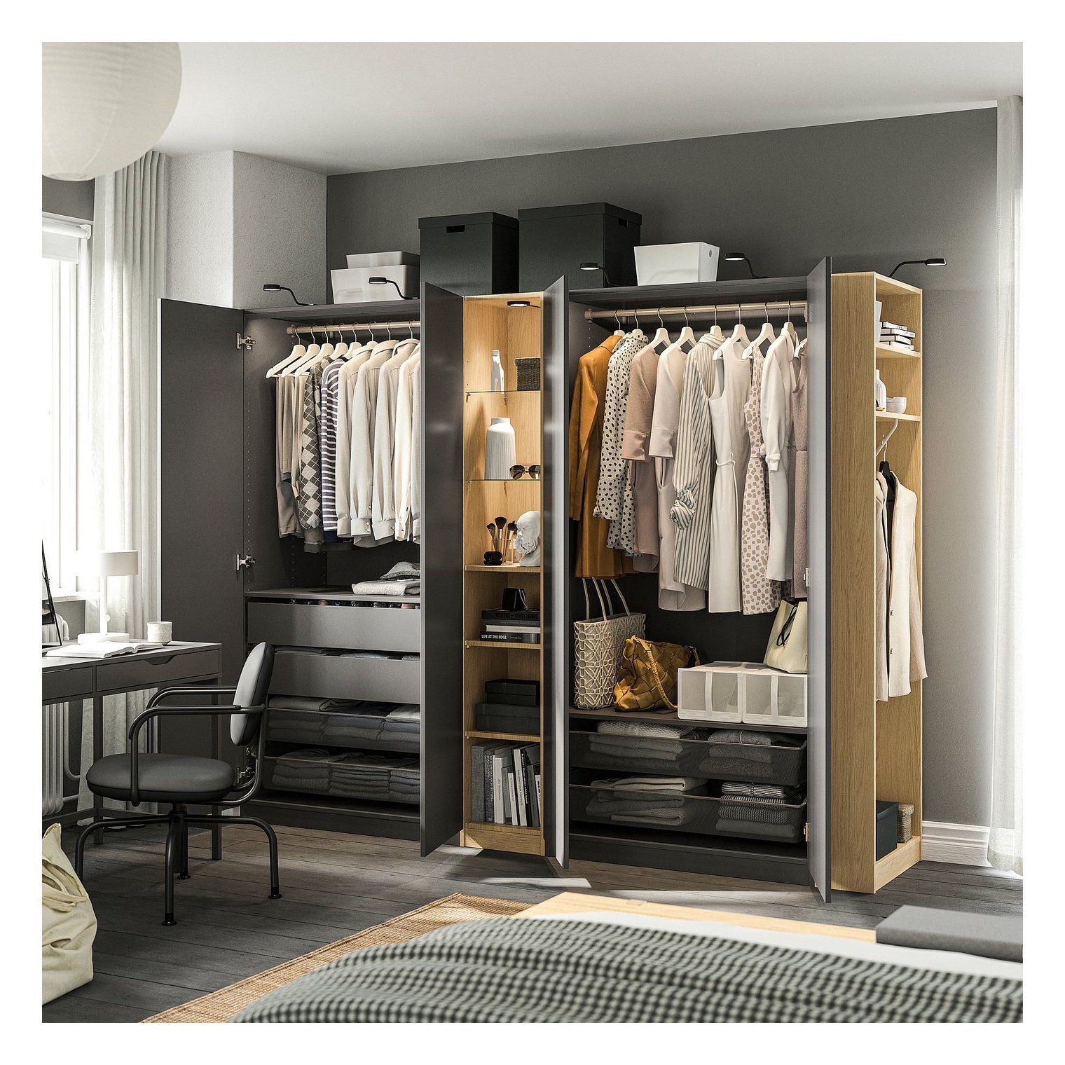 Средняя секция PAX имеет простой и неподвластный времени дизайн, который легко персонализировать, выбрав ящики, корзины и освещение.