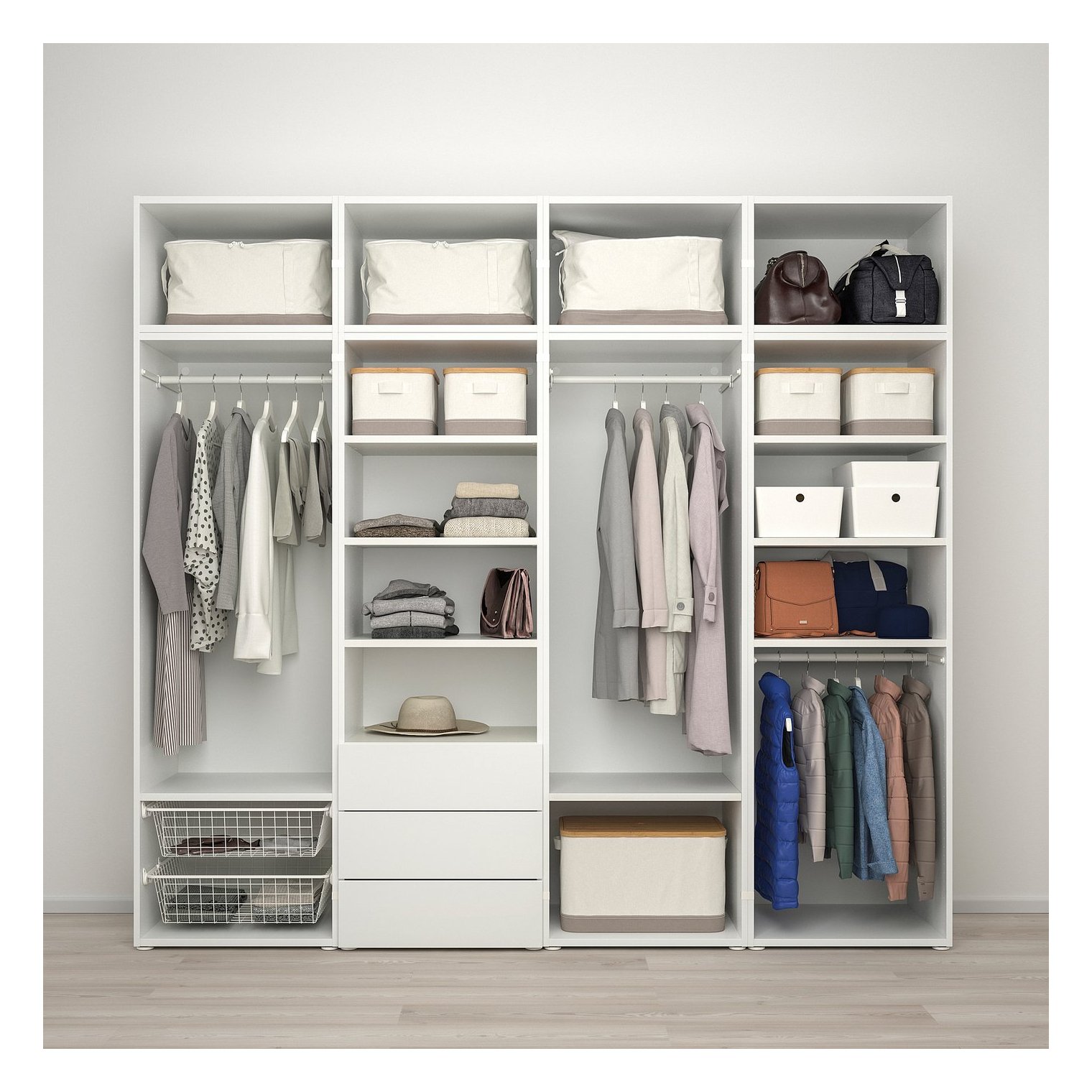 Вы можете легко переставлять элементы этой системы хранения в соответствии с различными потребностями или для создания нового дизайна. Просто добавляйте, убирайте или перемещайте отдельные предметы.