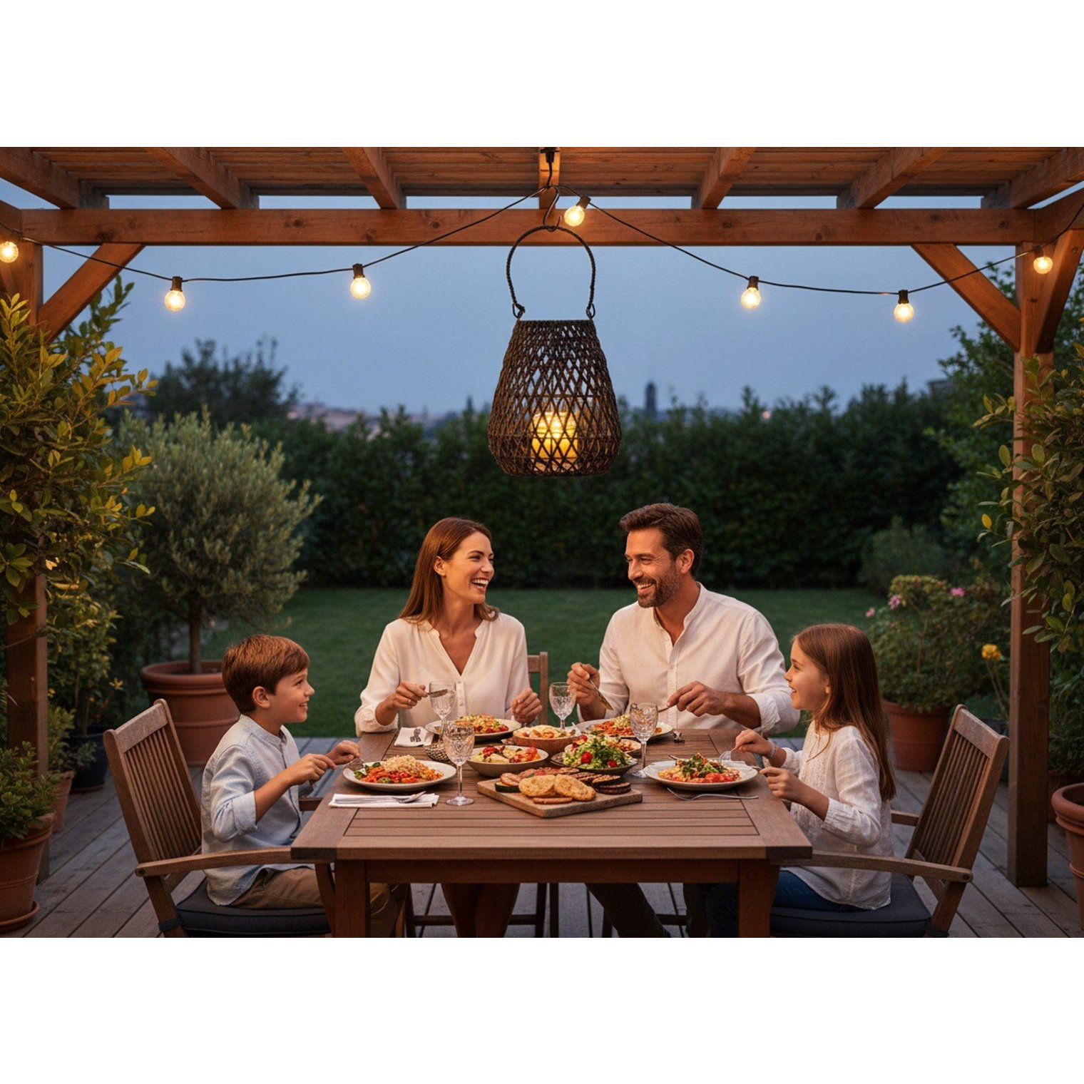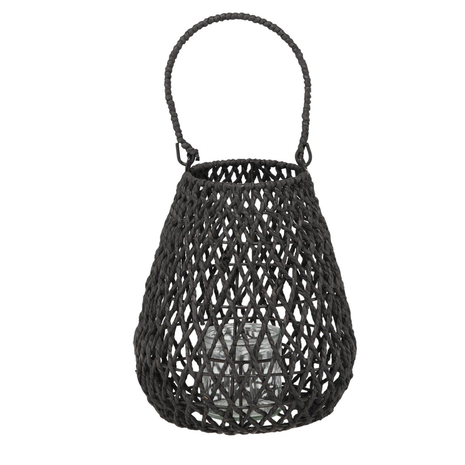 Изготовленный из плетеного материала и оснащенный стеклянной вставкой, он идеально подходит для свечей, создавая атмосферный свет и уникальную обстановку.
