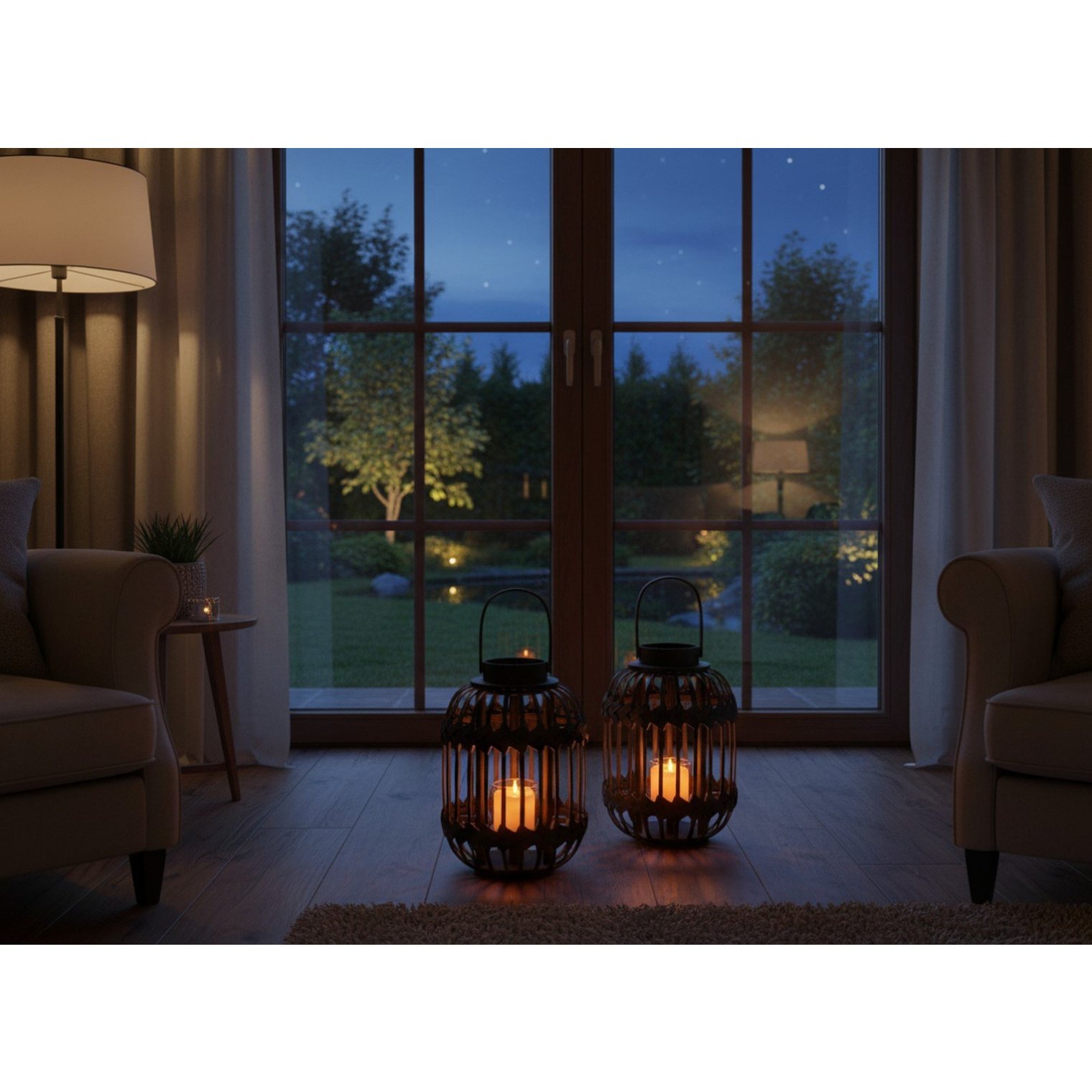Этот фонарь — стильная оправа для света, которая создает атмосферу спокойствия и элегантности — идеально подходит для вечерних моментов с книгой, отдыха на террасе или особых случаев.