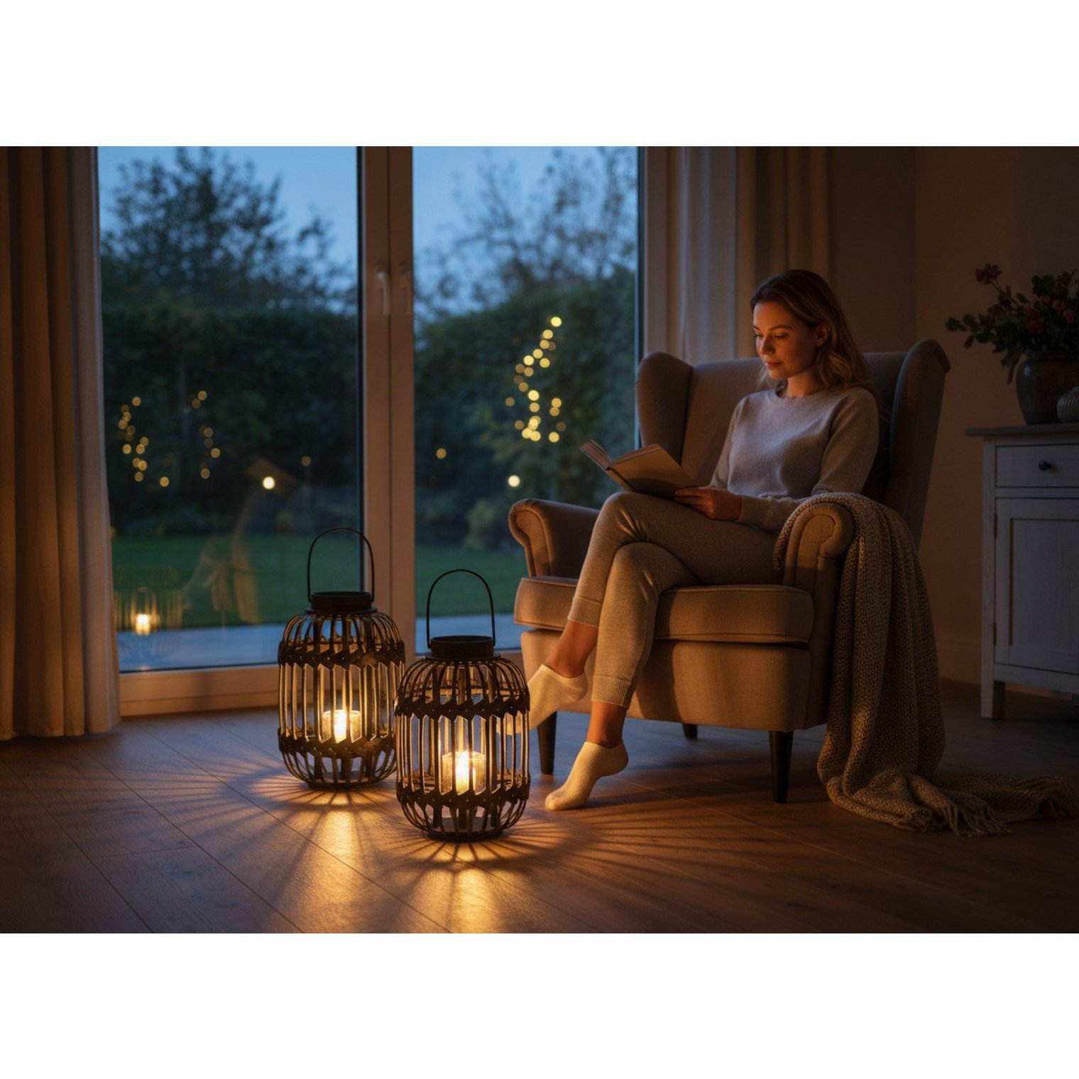 Этот фонарь — стильная оправа для света, которая создает атмосферу спокойствия и элегантности — идеально подходит для вечерних моментов с книгой, отдыха на террасе или особых случаев.