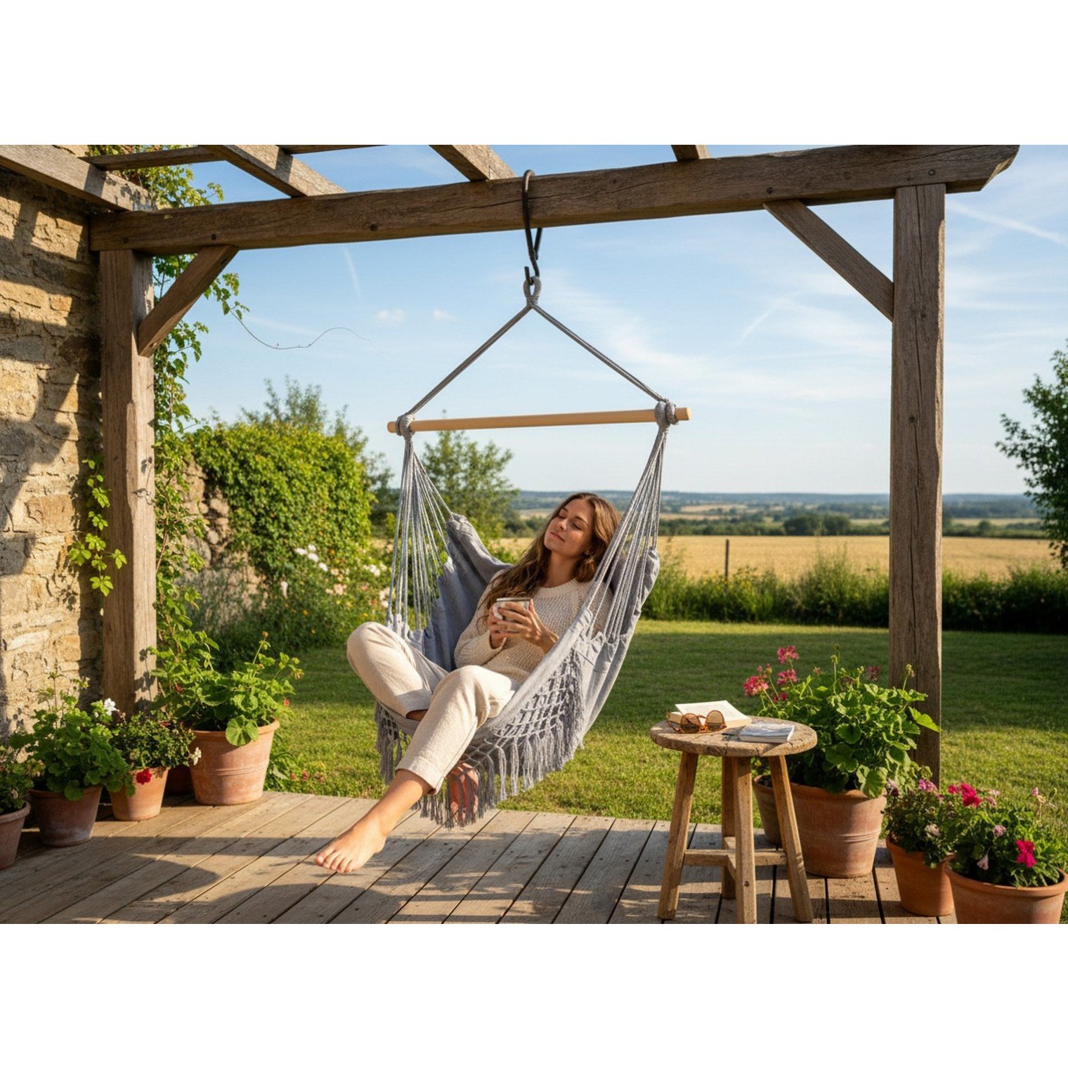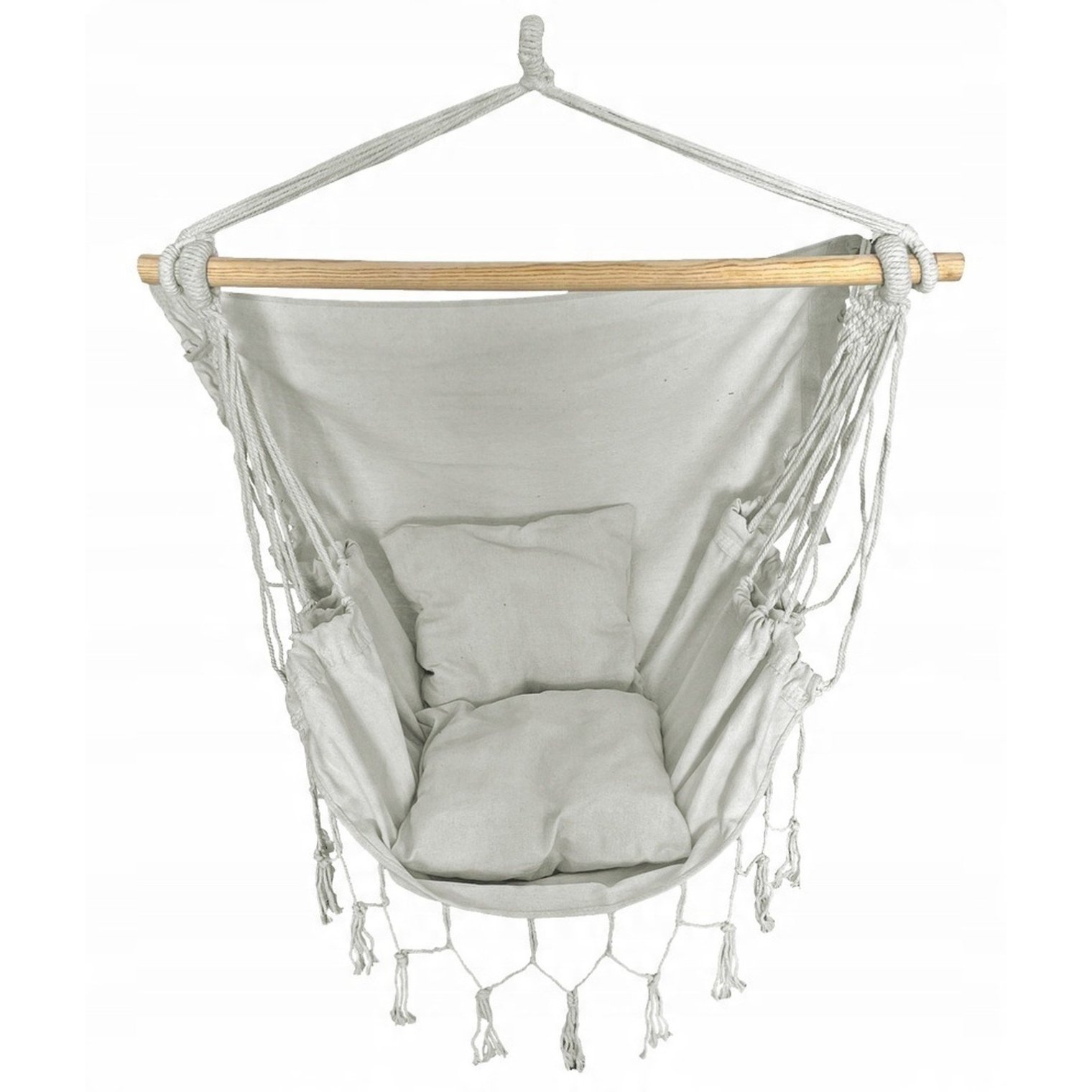 Открой новый уровень релакса с бразильским подвесным креслом в модном сочетании бежевого и серого. Этот стильный гамак в духе BOHO преобразит любое пространство — от балкона до гостиной!