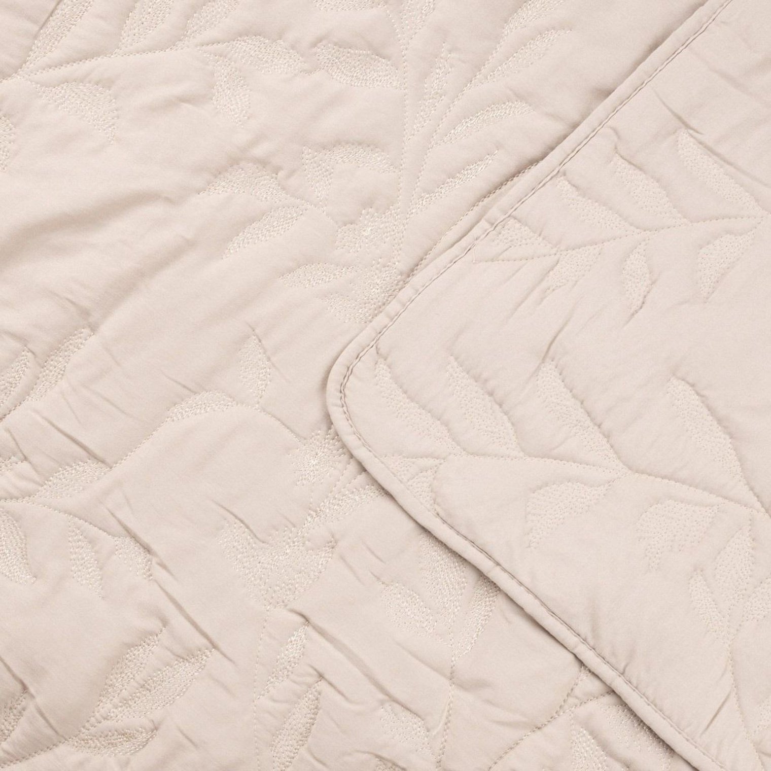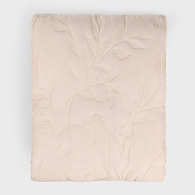 Украсьте свою спальню пледом LIMENA элегантного кремово-бежевого оттенка. Жаккардовый узор с мотивом веточек и листьев добавит легкости и уюта вашей комнате, а изысканная структура ткани подчеркнет утонченное очарование любого интерьера – от классического до современного.