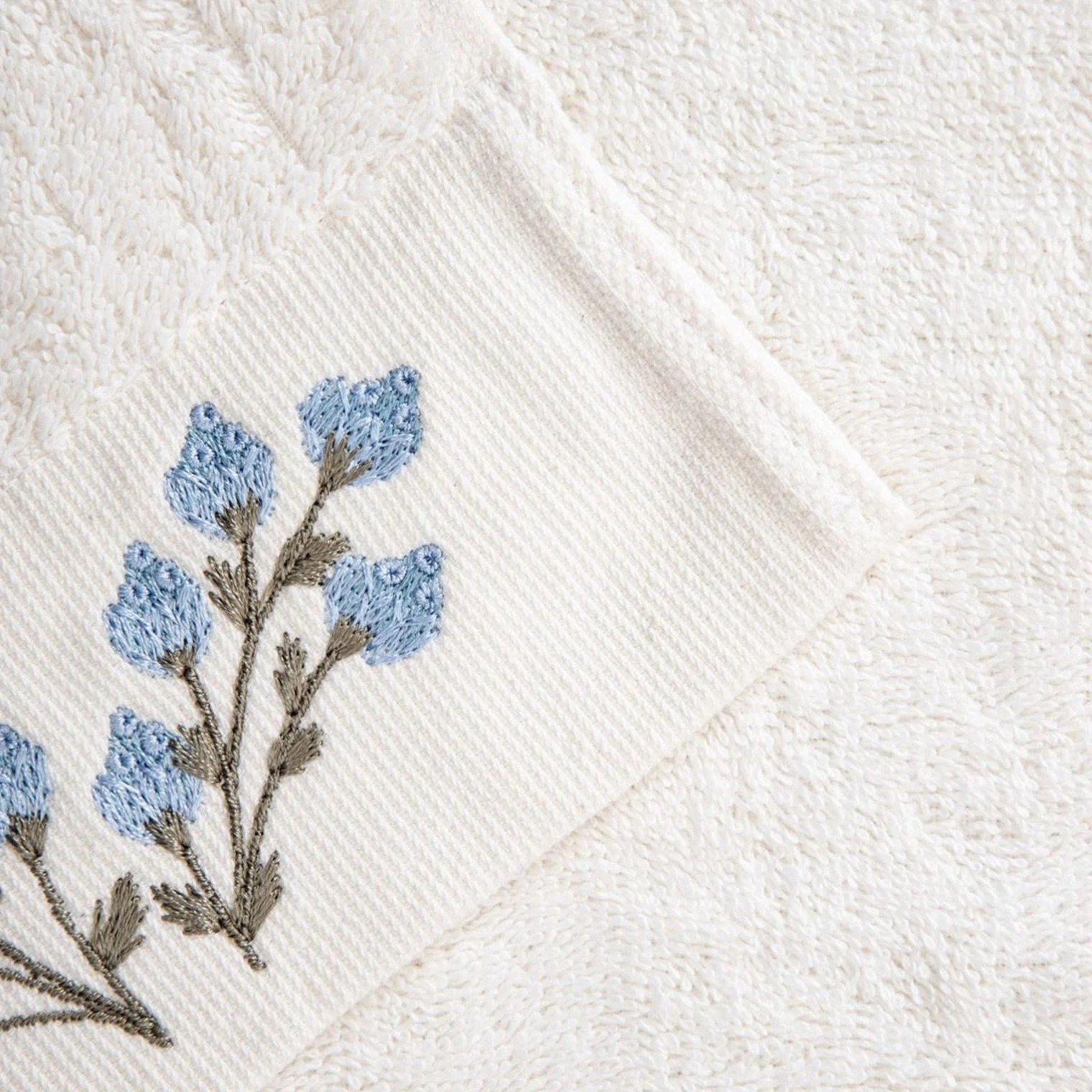 Полотенце с вышитыми синими цветами, 50 × 90 см.