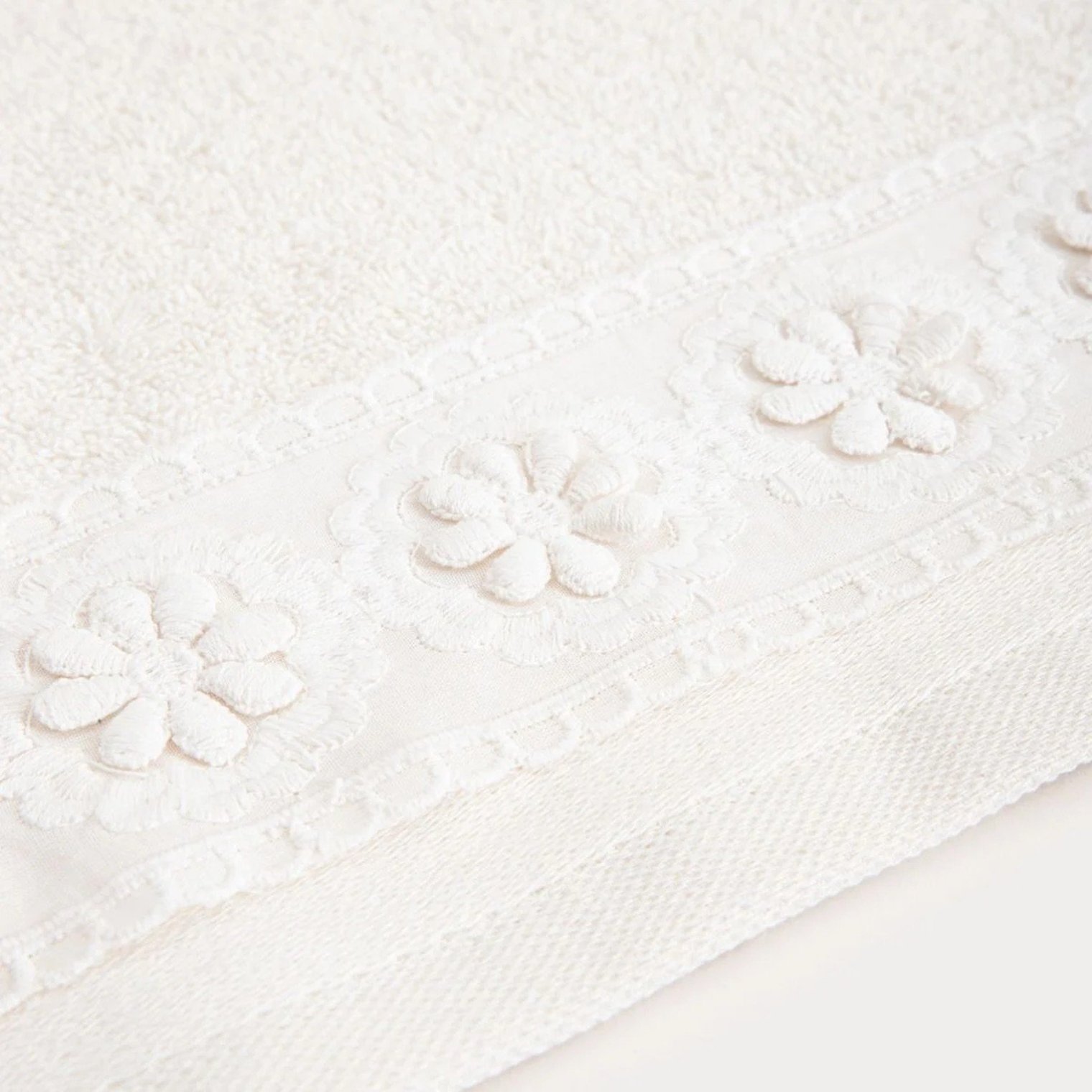 Это полотенце размером 70 x 130 см идеально подходит в качестве банного полотенца для ежедневного вытирания. Оно прекрасно дополнит ванную комнату, оформленную в классическом, романтическом или натуральном стиле. Декоративная вышивка также делает его украшением, улучшая эстетику интерьера и создавая уютную атмосферу.