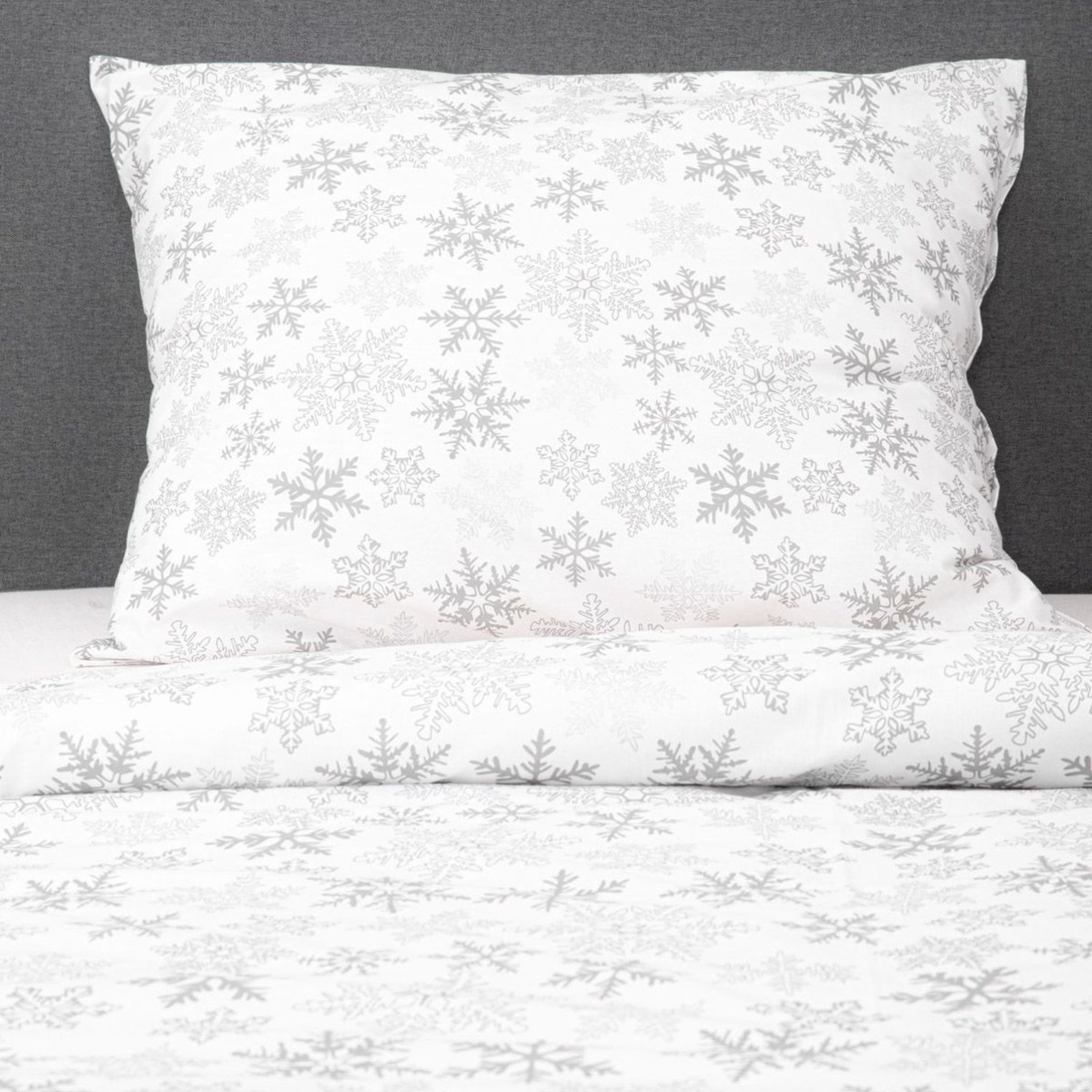 Постельное белье LUGN – это квинтэссенция изысканности – белая поверхность постельного белья дополнена мелким узором в виде разнообразных снежинок, различающихся по форме и размеру. В комплект входят две наволочки размером 70х80 см.