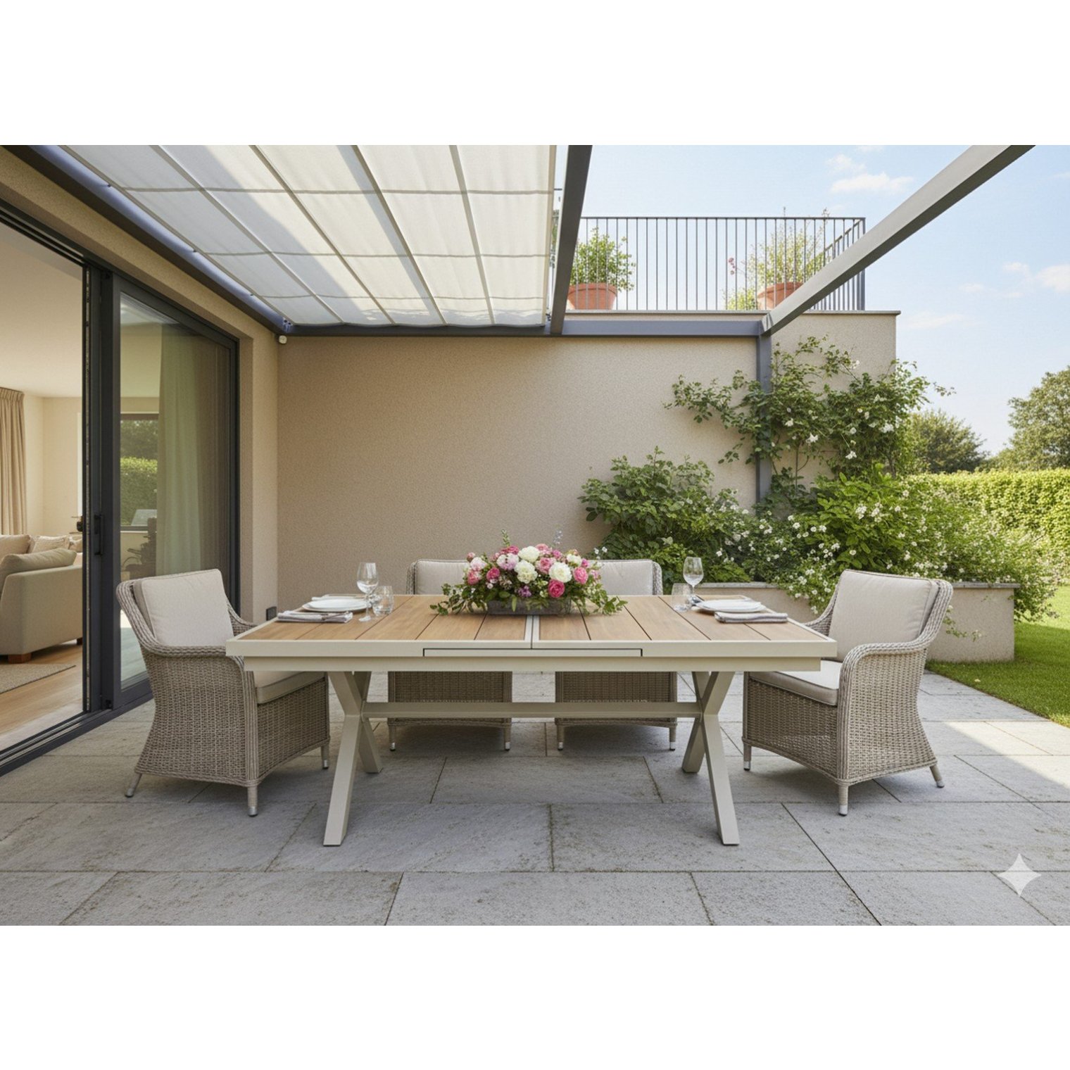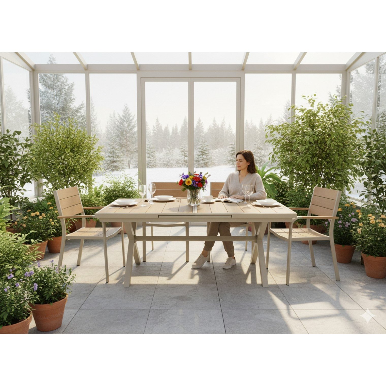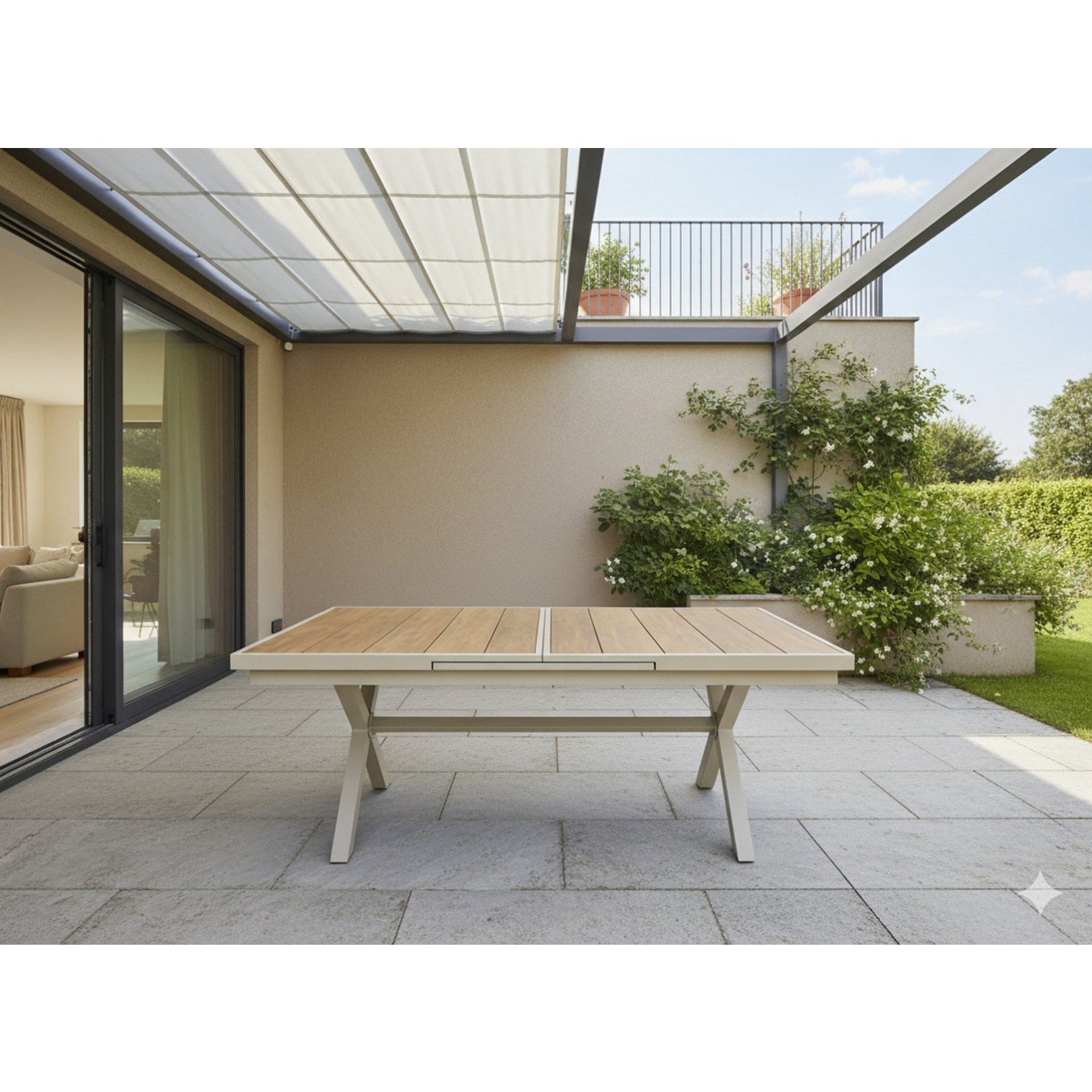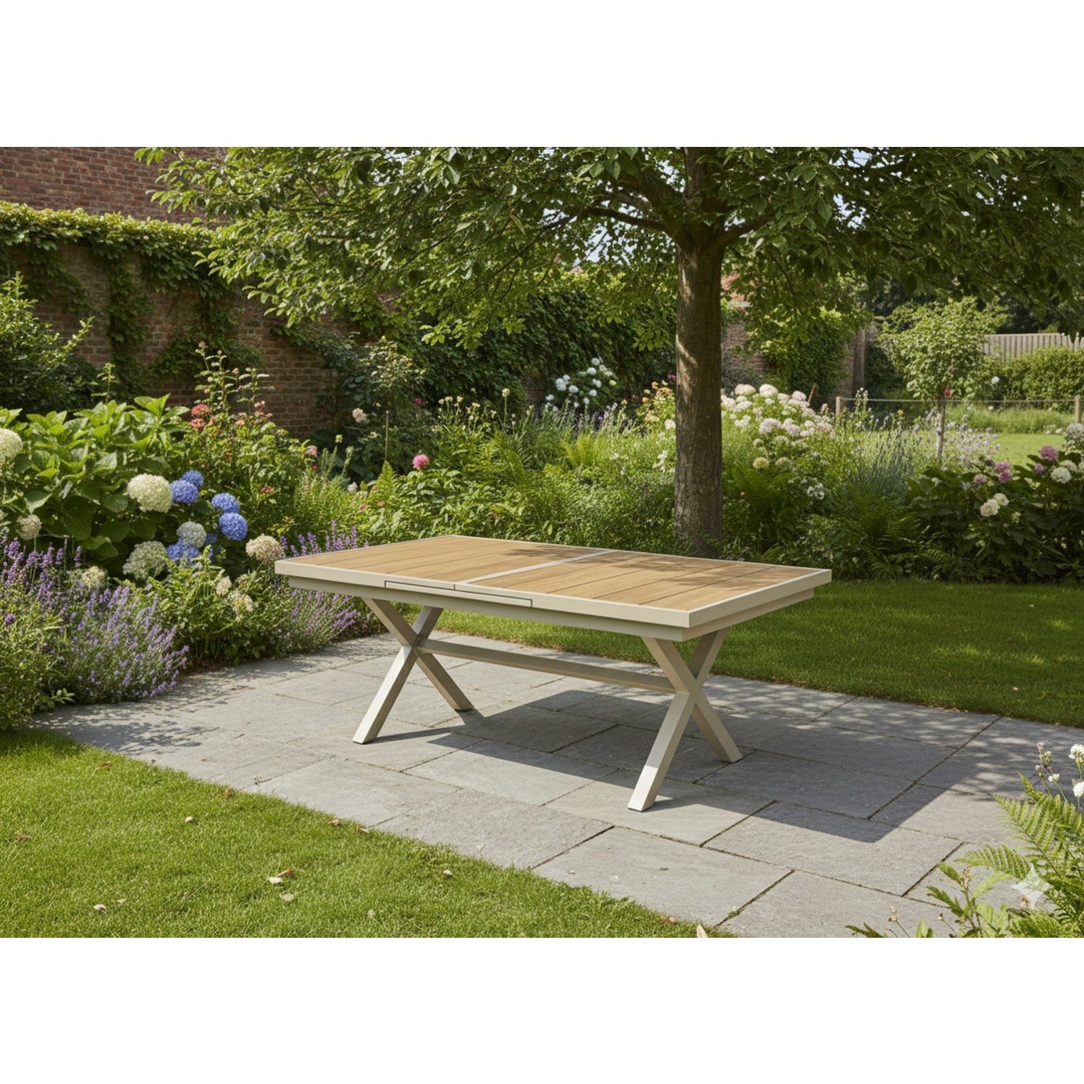 Откройте для себя стильный и практичный садовый стол, сочетающий в себе современный дизайн, высокую устойчивость к погодным условиям и простоту использования. Элегантная конструкция из бежевого алюминия и столешница с отделкой под дерево делают его идеальным дополнением к любой террасе, саду или коммерческому помещению.