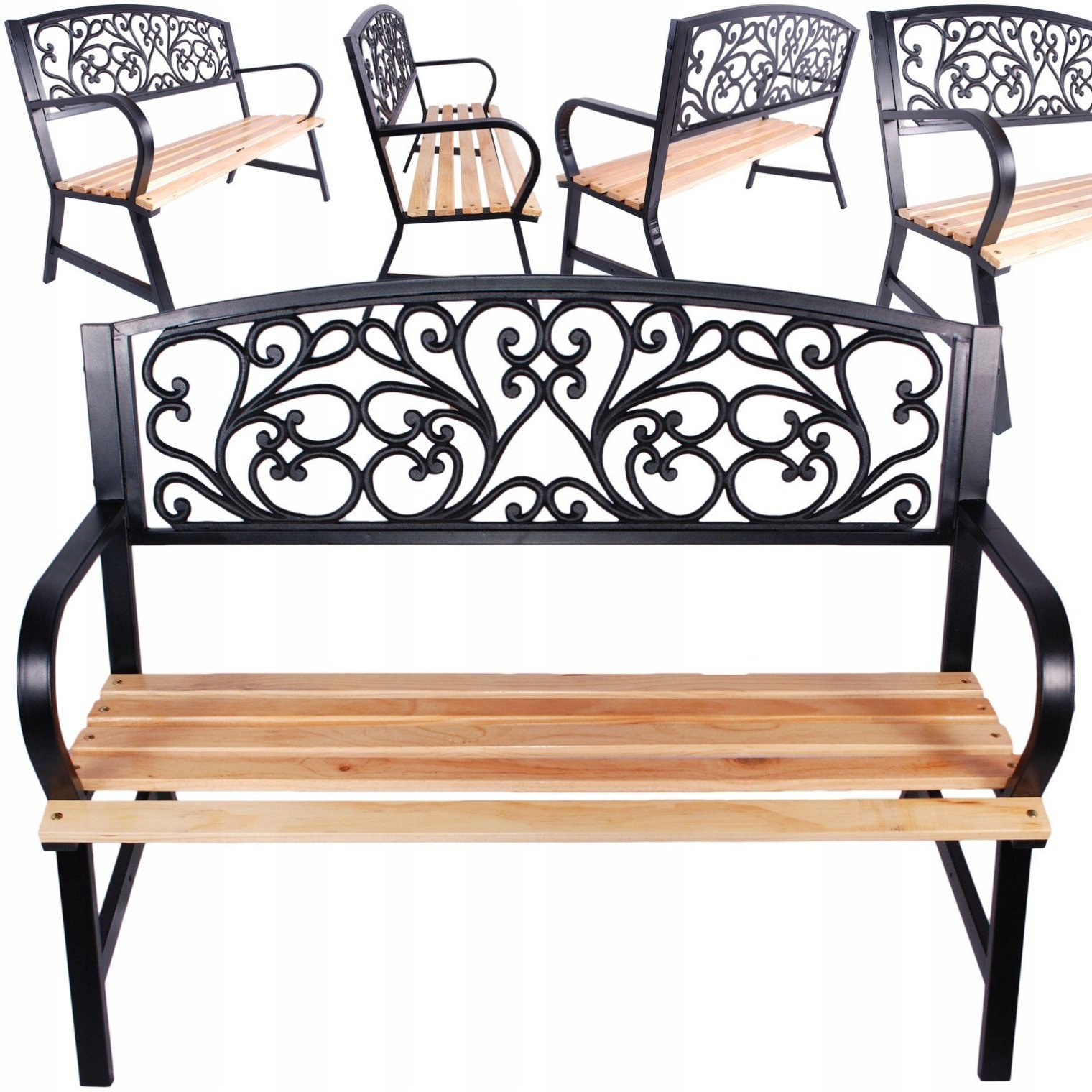 Красивая, практичная, декоративная садовая скамейка из серии GARDEN LINE – это товар для вас и вашего сада! Скамейка изготовлена из прочных материалов. Боковые элементы из декоративного чугуна. Древесина, пропитанная и лакированная под давлением. Спинка изготовлена из дерева, а декоративные элементы – из пластика, имитирующего чугун.