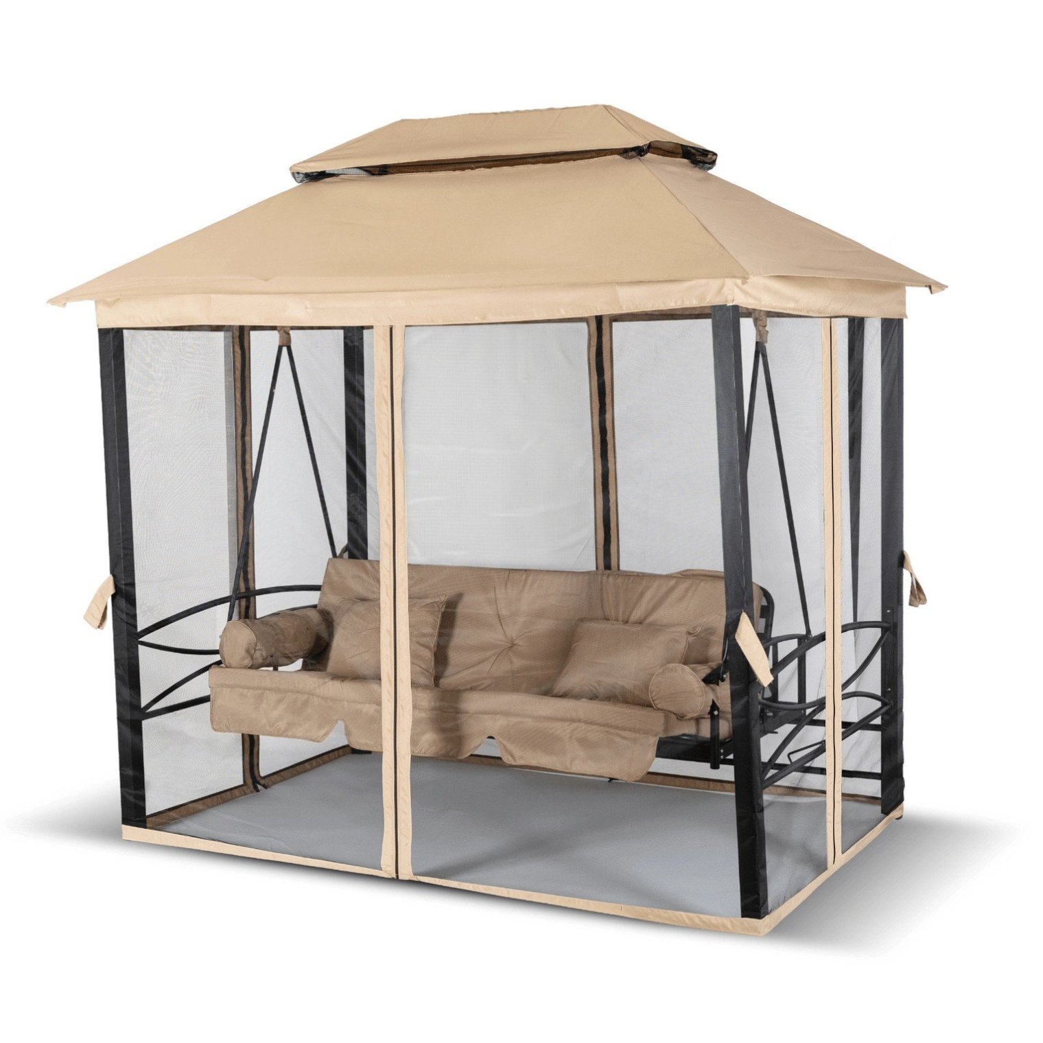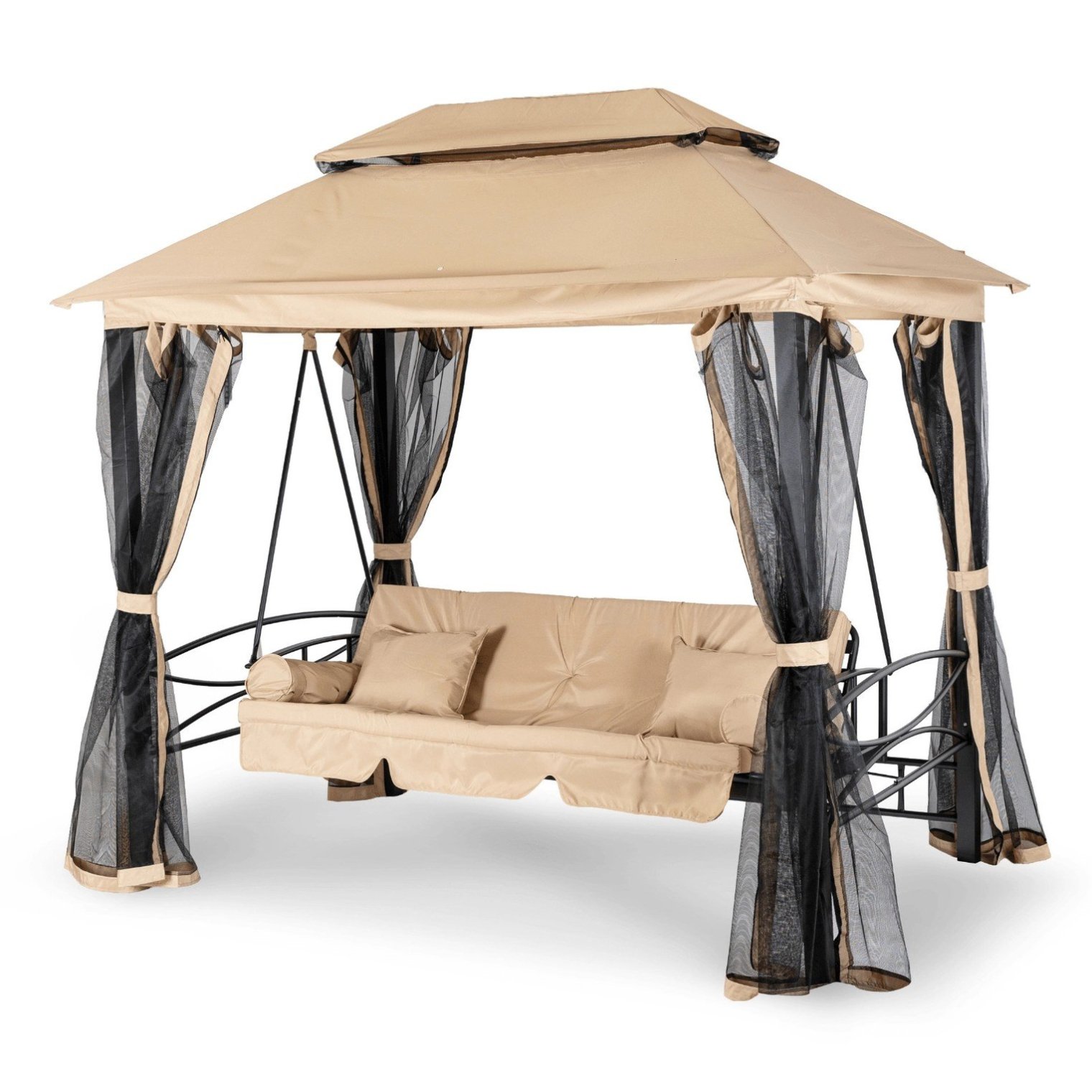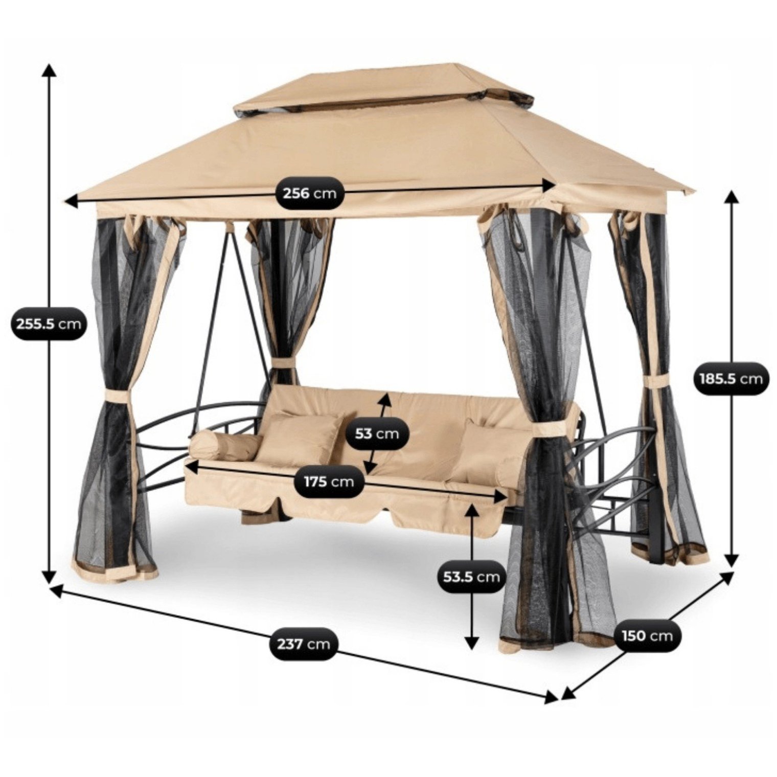 Садовые качели с москитной сеткой Mebel Elit CARMEN 237x150x256 см Бежевый ME.CARMEN/BZ/T/OGR/HUS