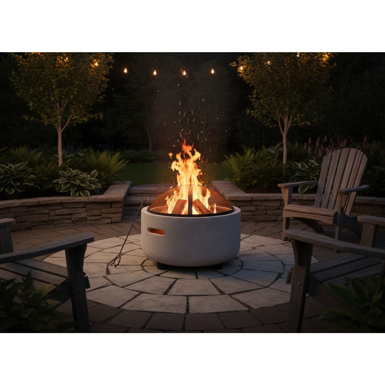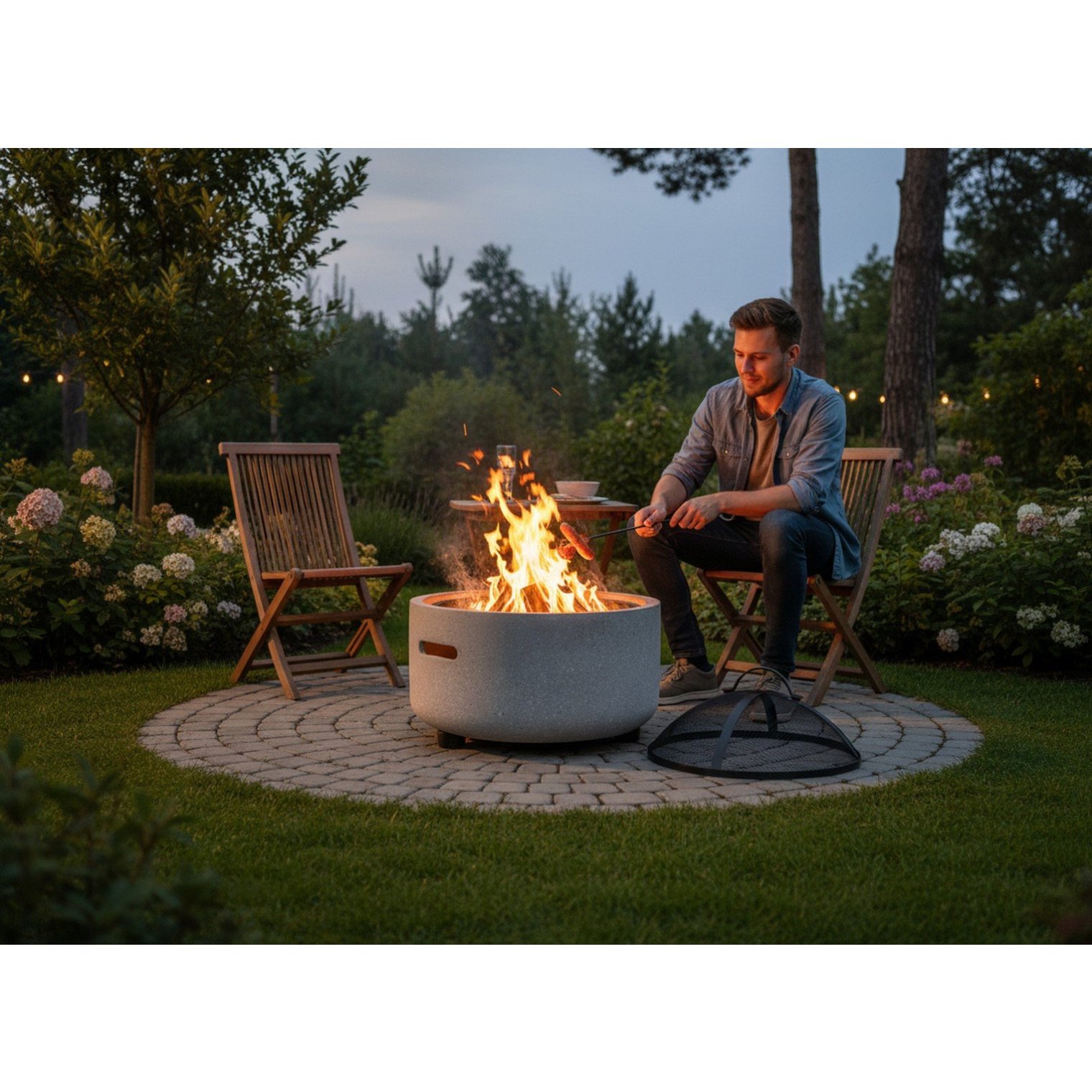Изготовлено из плит MgO, устойчиво к погодным условиям и выглядит современно. Кроме того, оснащено решёткой для приготовления, которая превращает костёр в мини-гриль для сада.