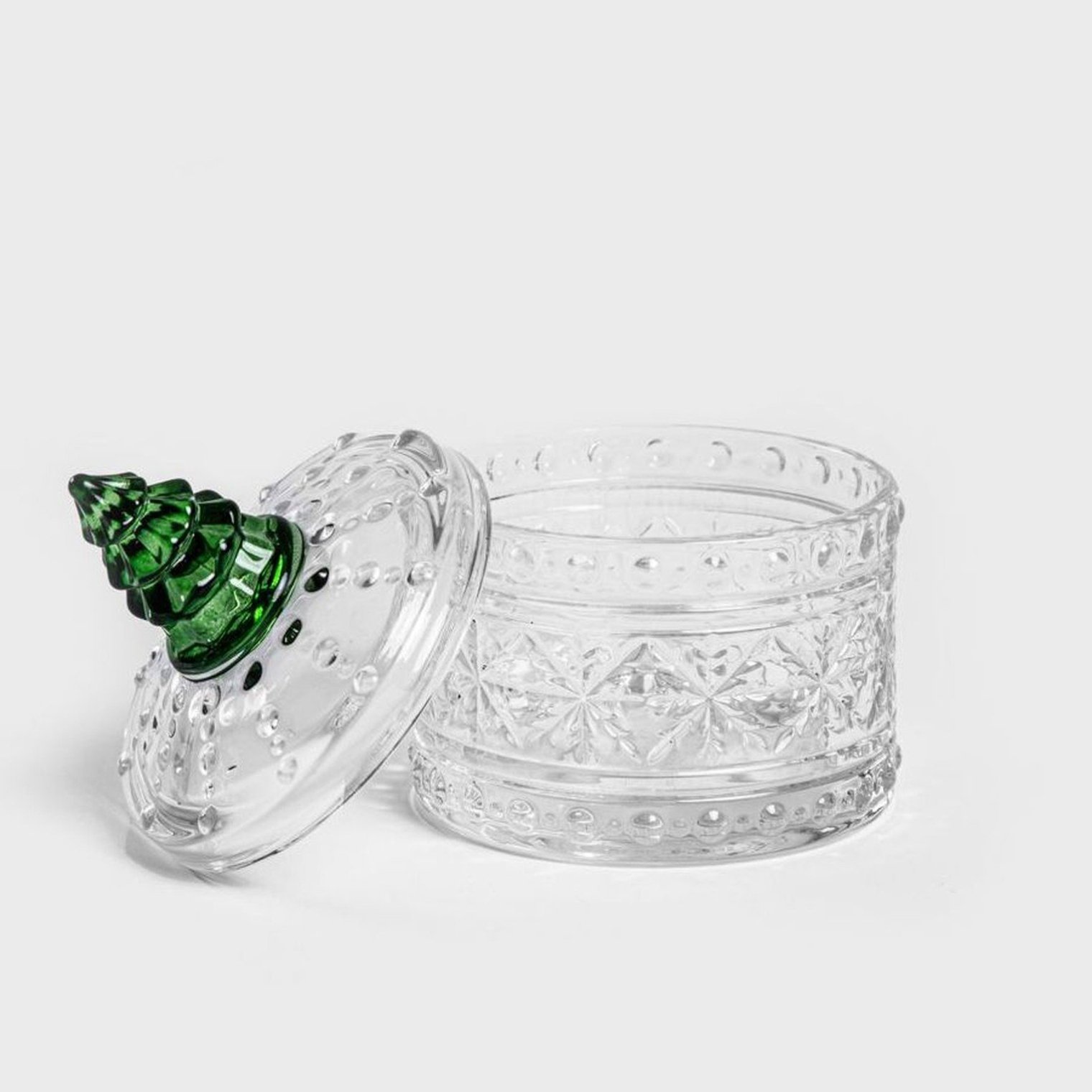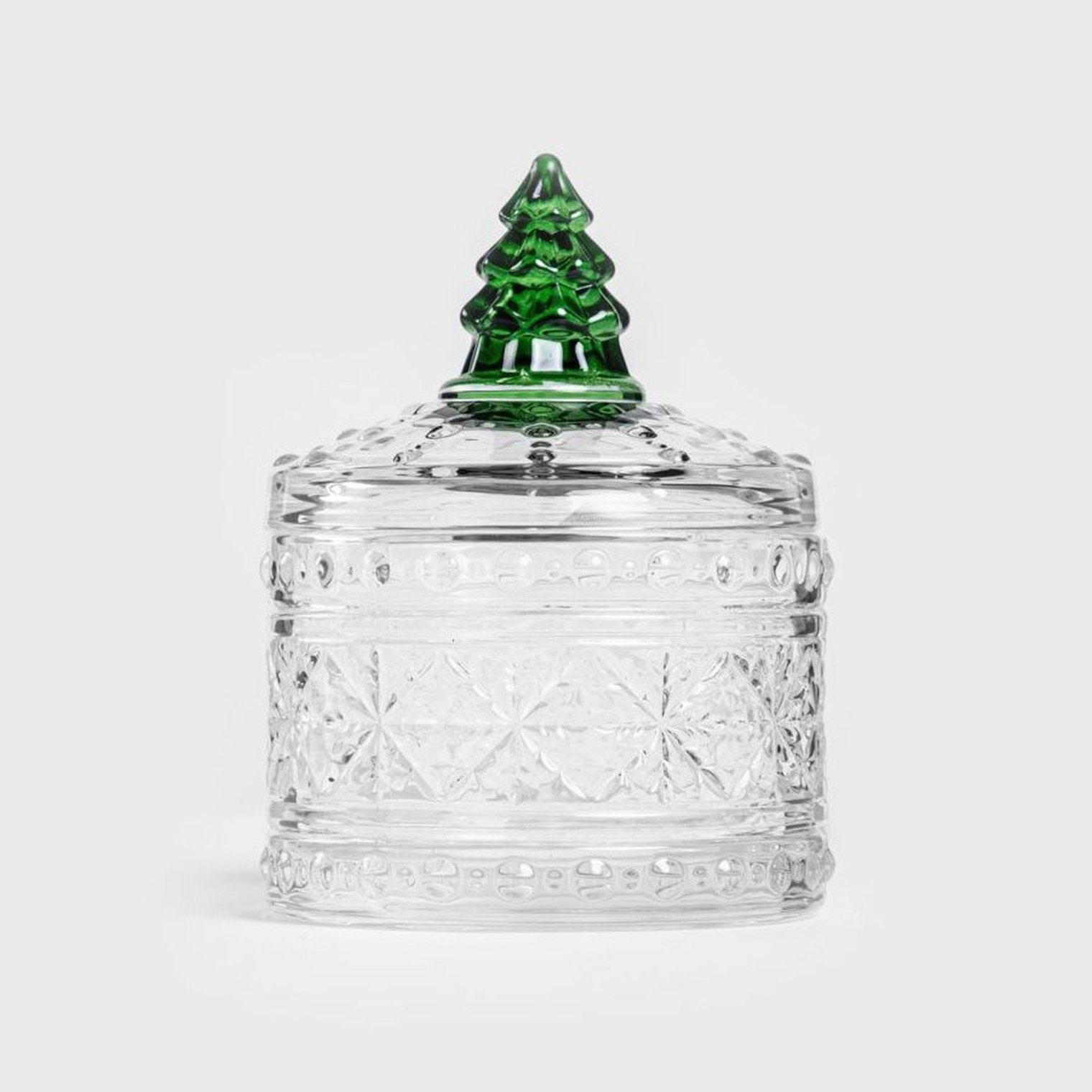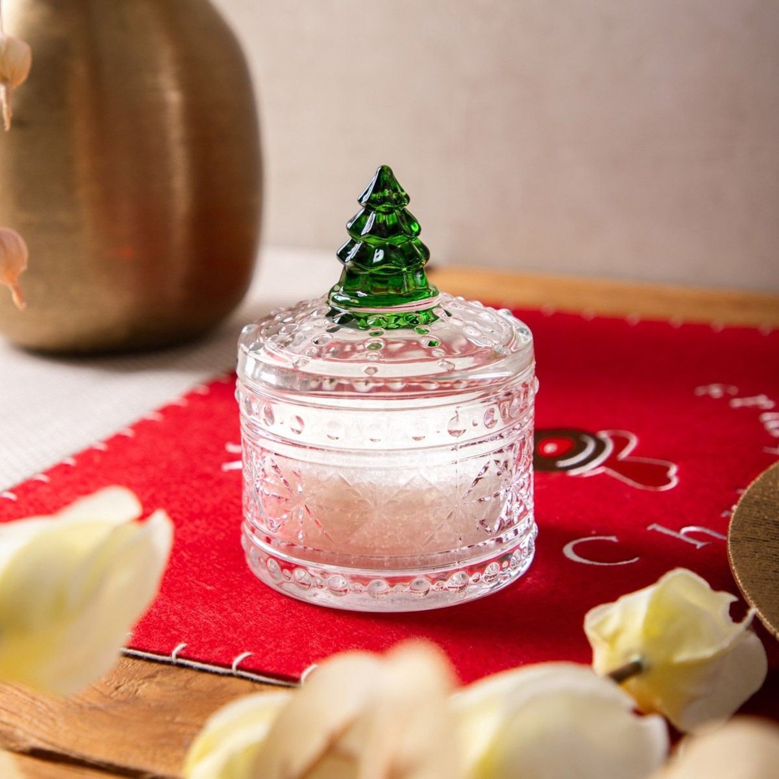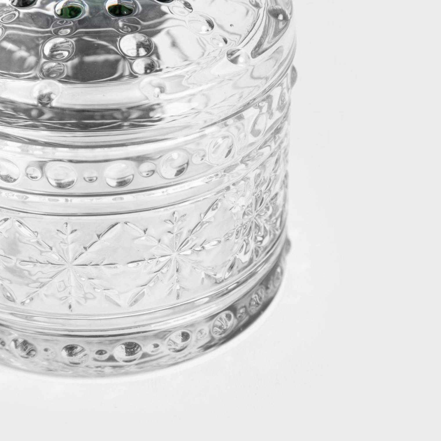 Эта рождественская сахарница станет уникальным дополнением к вашей сервировке, добавив очаровательный декоративный штрих. Изготовленная из прозрачного стекла с богатым декоративным тиснением в виде снежинок, сахарница увенчана крышкой в виде ёлочки яркого зелёного оттенка. Сочетание прозрачного стекла и зелёных акцентов делает её идеальным дополнением к любой сервировке стола.