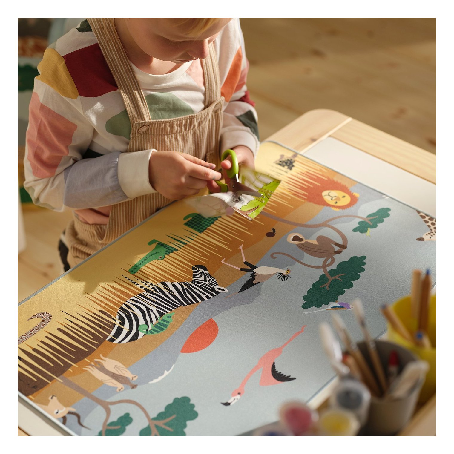 Коврик защищает стол от грязи и царапин, обеспечивая гладкую поверхность, на которой вашему ребёнку будет удобно писать или рисовать. Идеально подходит для художников любого возраста, которые хотят творить без ограничений.