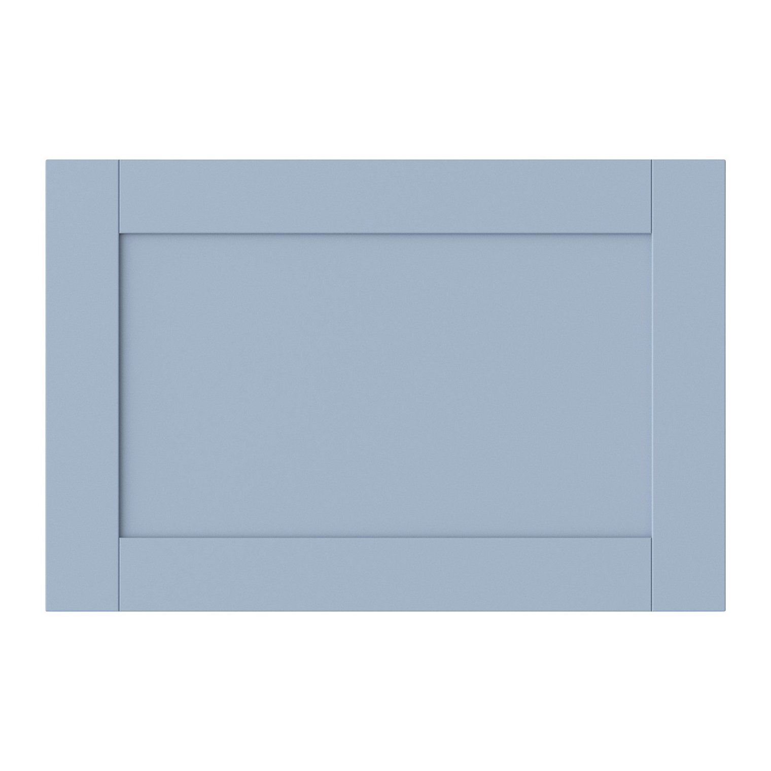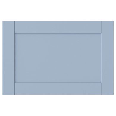 Двери отличаются стильным, простым дизайном и покрыты гладкой синей пленкой, что придает им традиционный вид.