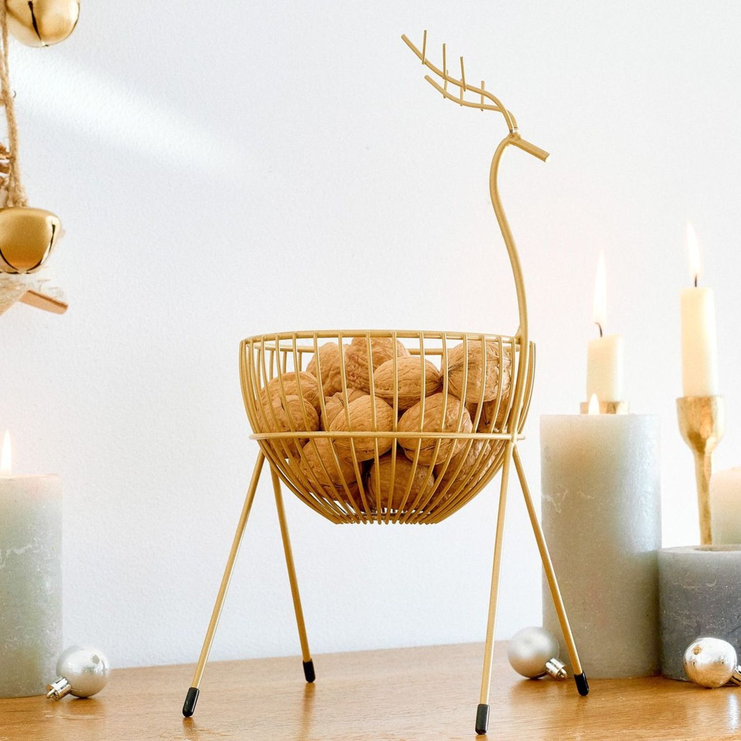 Рождественские украшения создают неповторимую атмосферу, а фруктовая корзина LET IT SNOW в форме оленя станет уникальным дополнением к любому интерьеру. Её уникальный дизайн будет прекрасно смотреться на рождественском столе, на кухонной столешнице или в гостиной. Прочная металлическая конструкция сочетает в себе элегантность и функциональность, делая её не только декоративным элементом, но и практичным кухонным аксессуаром.