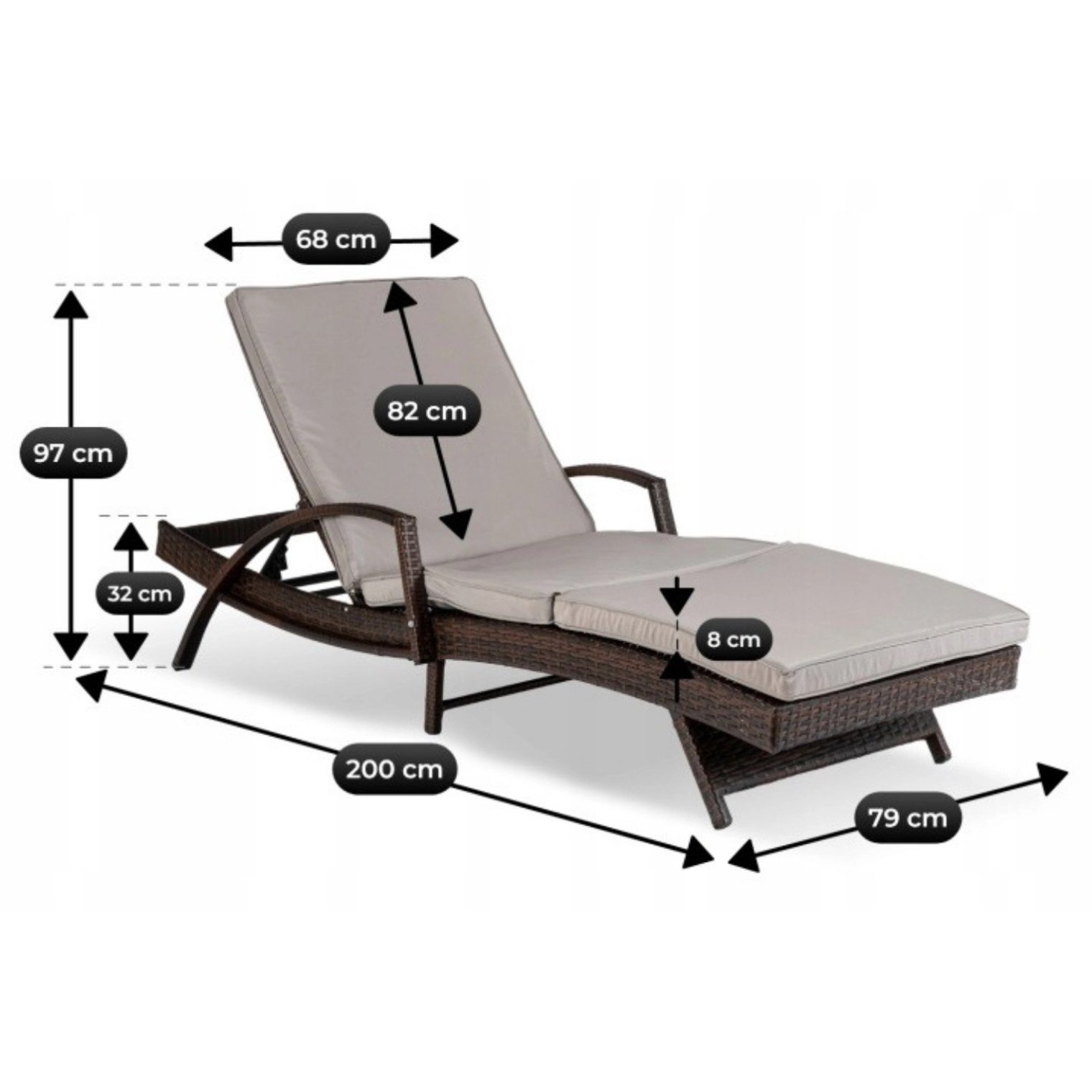 - Отделка технораттаном — подчеркивает современный вид и эстетику шезлонга;